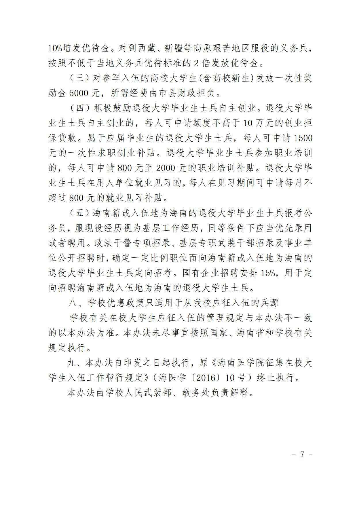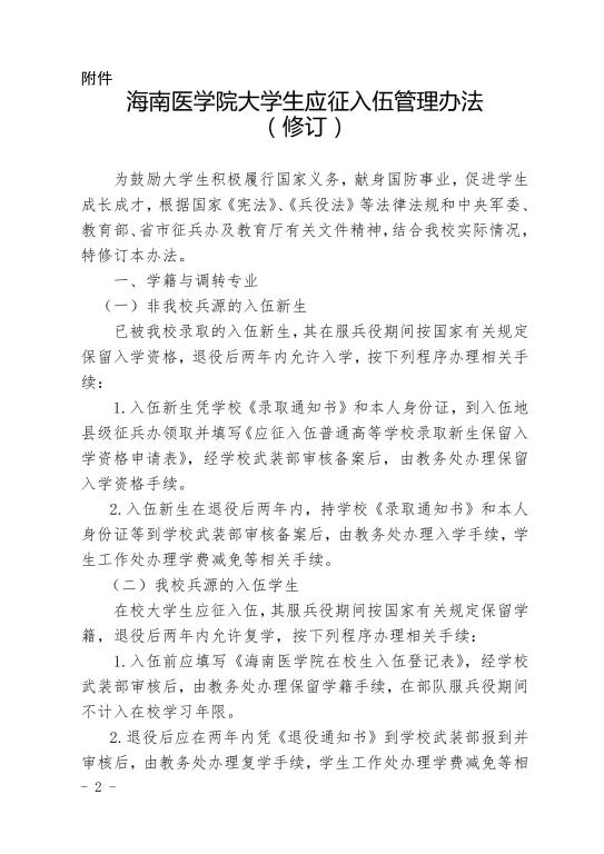 2、有关应征条件和政策咨询,请联系学校人民武装部(海南医学院征兵工作站)