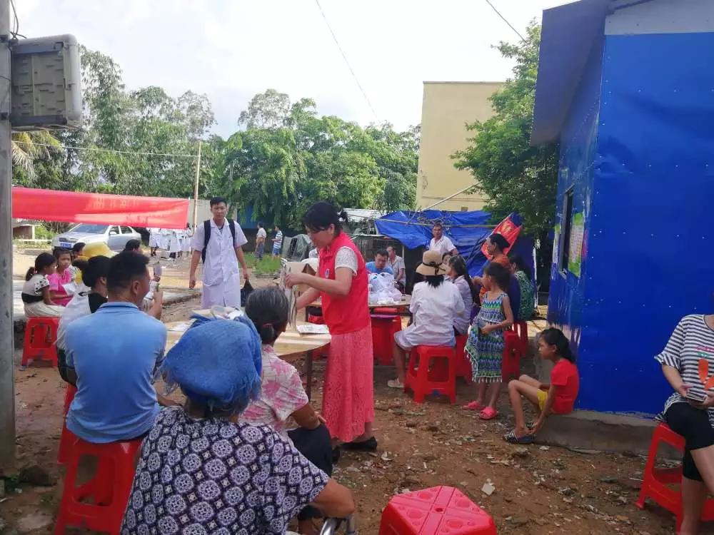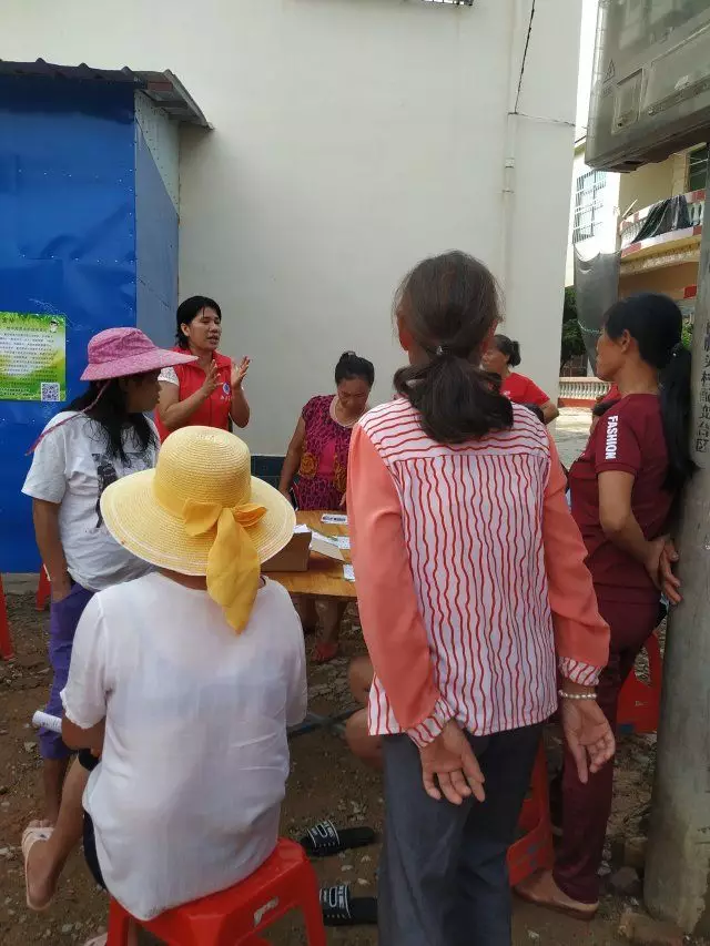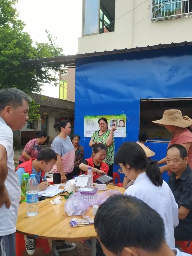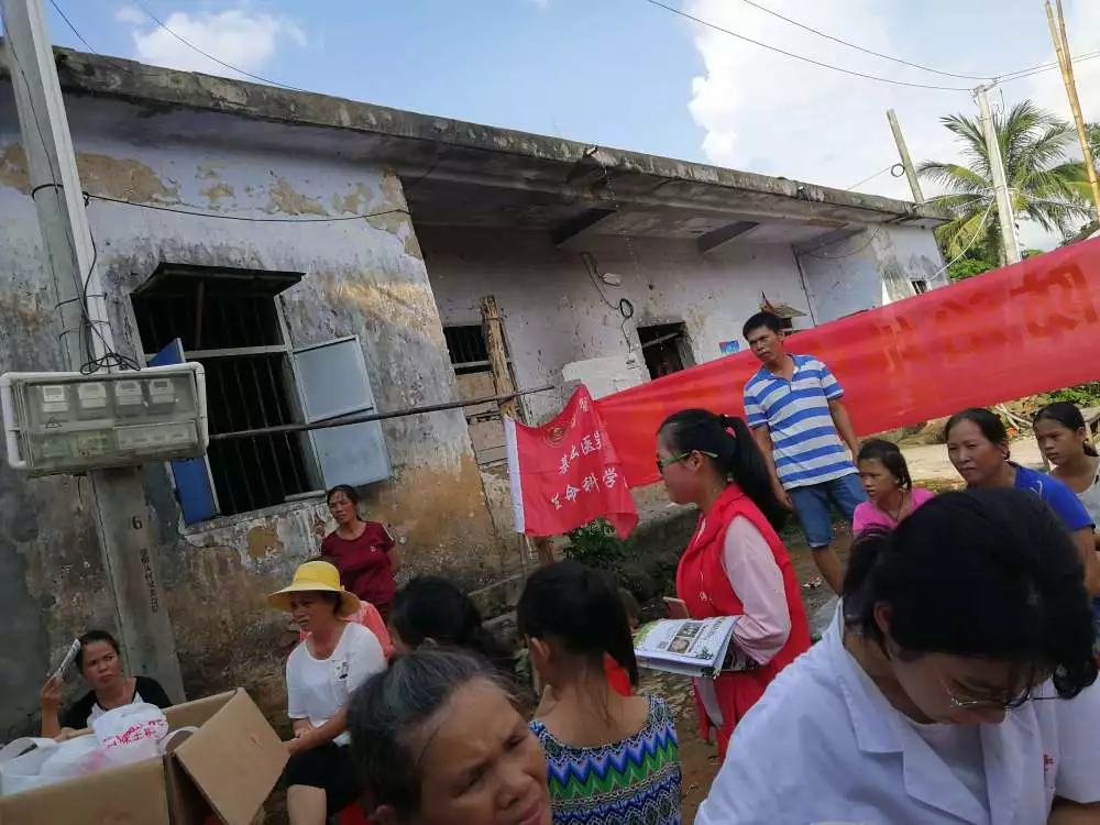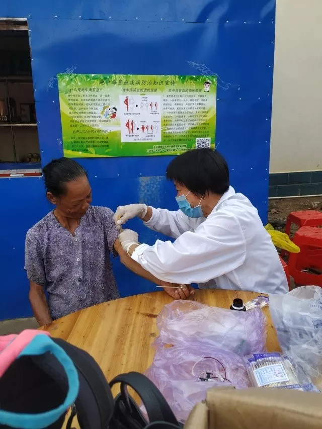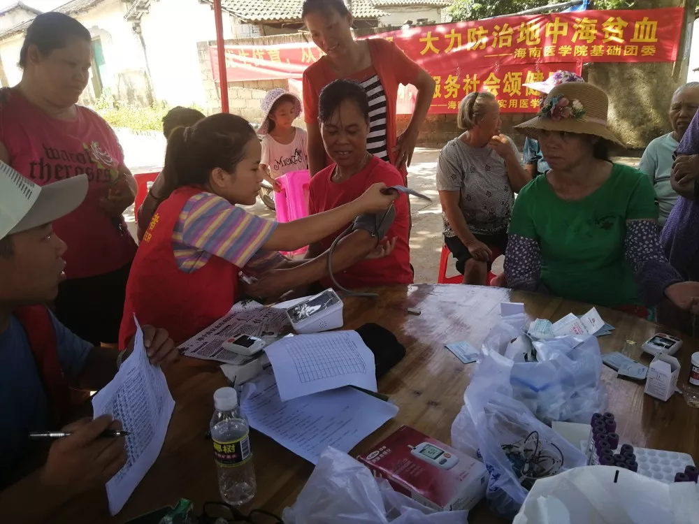 尽管是雨后,但是海南的气温依然炎热,村里提供的条件比较简陋,只有几张桌子和椅子,然而大家都没有怨言,依旧认真有序地进行工作。下午的工作有了上午经验的积淀,活动流程更加的行云流水。这一边同学们测量血压和测血糖,那一边高梅护士和吴柳妃护士给村民采血。劳梅丽老师用简单易懂的语言给村民讲解了地中海贫血的危害和预防,大家听得很认真。紧接着劳老师又给村民讲解了糖尿病的症状和危害,村民们对老师的问题都进行了积极回答,这让我们觉得讲演也是一件很锻炼人的工作,希望团队中的同学明天能积极在村民面前演讲宣教疾病。
