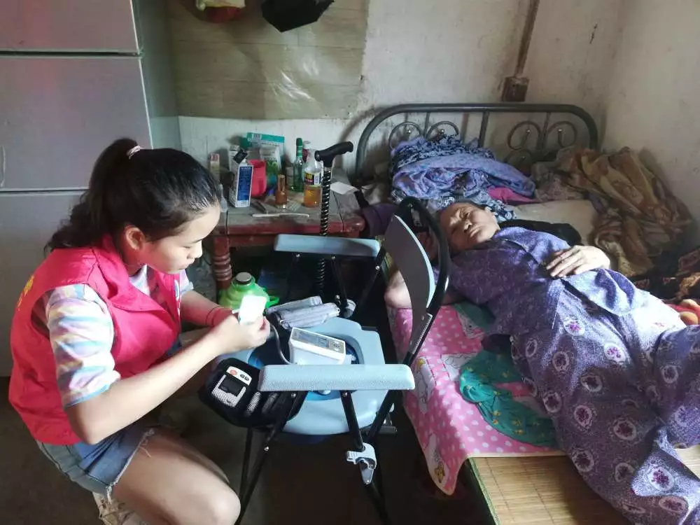 在即将结束的节点,我们听说有一位村民因为骨折无法行动,带队老师劳梅丽和团队成员羊淑爱同学进入这位村民的家中对村民进行了询问和身体检查。