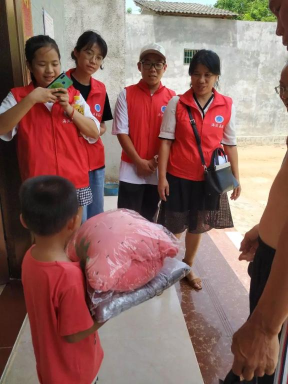 午饭时间快到了,早上的工作也基本结束了,但是我们的温暖行动并没有结束,下一站就是去方红村看望患有地贫的孩子。我们收拾好东西去菜市场买了一只鸡(鸡——象征吉利),带着我们事先准备好的毛绒玩具,抱枕。向着方红村符语乐小朋友家出发,在村长的带领下终于来到了他家。小男孩是一个5岁的患有重型β地中海贫血的患儿。见到他第一眼,我们觉得他跟普通小朋友没有区别,小家伙很乖巧,仔细观察后,他确实有地中海贫血的典型症状:面色苍黄,腹部隆起(可能有肝脾肿大),头比例大。在我们跟他的聊天中了解到他的父母都外出打工了,他和爷爷一起生活。跟他爷爷了解到他从出生到现在每个月都要去医院检查身体以及输血,每次都要花好几千块钱,家庭负担真的很大!但是现在在党的领导下,以及各个地区我们的扶贫政策逐渐完善,逐渐做到了精准扶贫。针对的真正的贫困户给予帮助。而这个小朋友家里就是其中的一个扶贫对象,在政策的拥护下,和政府的帮助下他们家终于也能住上了坚固,安全,干净整洁的房子。而且他每个月的身体检查输血等医疗费用,都有相应的优惠。听到这我们心里的大石终于有了着落,我们着实要感谢祖国,感谢党的领导。