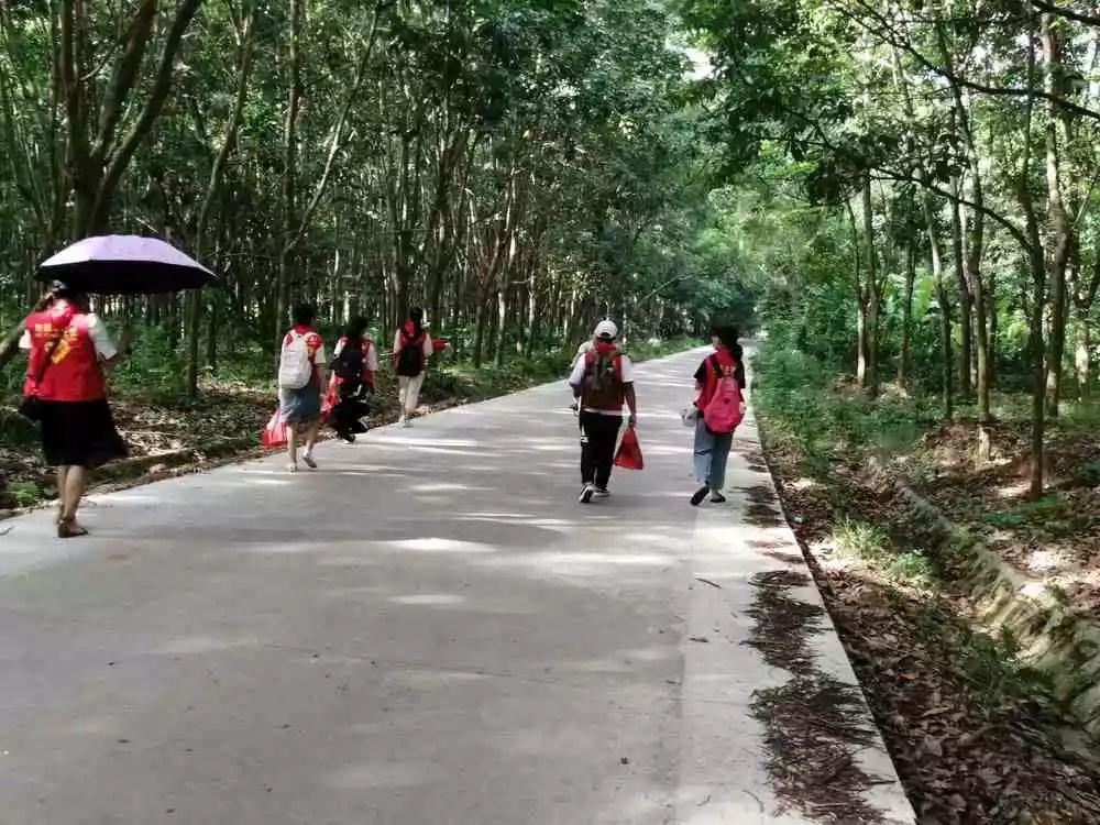 7月18日,由17和18生物技术本科班同学组队的海南医学院地贫筛查和宣讲团队三下乡的第5天,依然是晴朗的一天,和煦的阳光,透过稠密的树叶洒落下来,成了点点金色的光斑,我们拎着大包小包的东西,干劲十足地,沿着树荫蔽下的小路哼着小曲往今天的目标村庄——俄郎村进发。