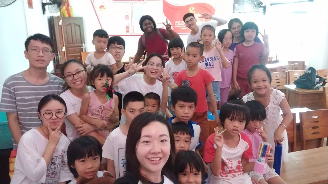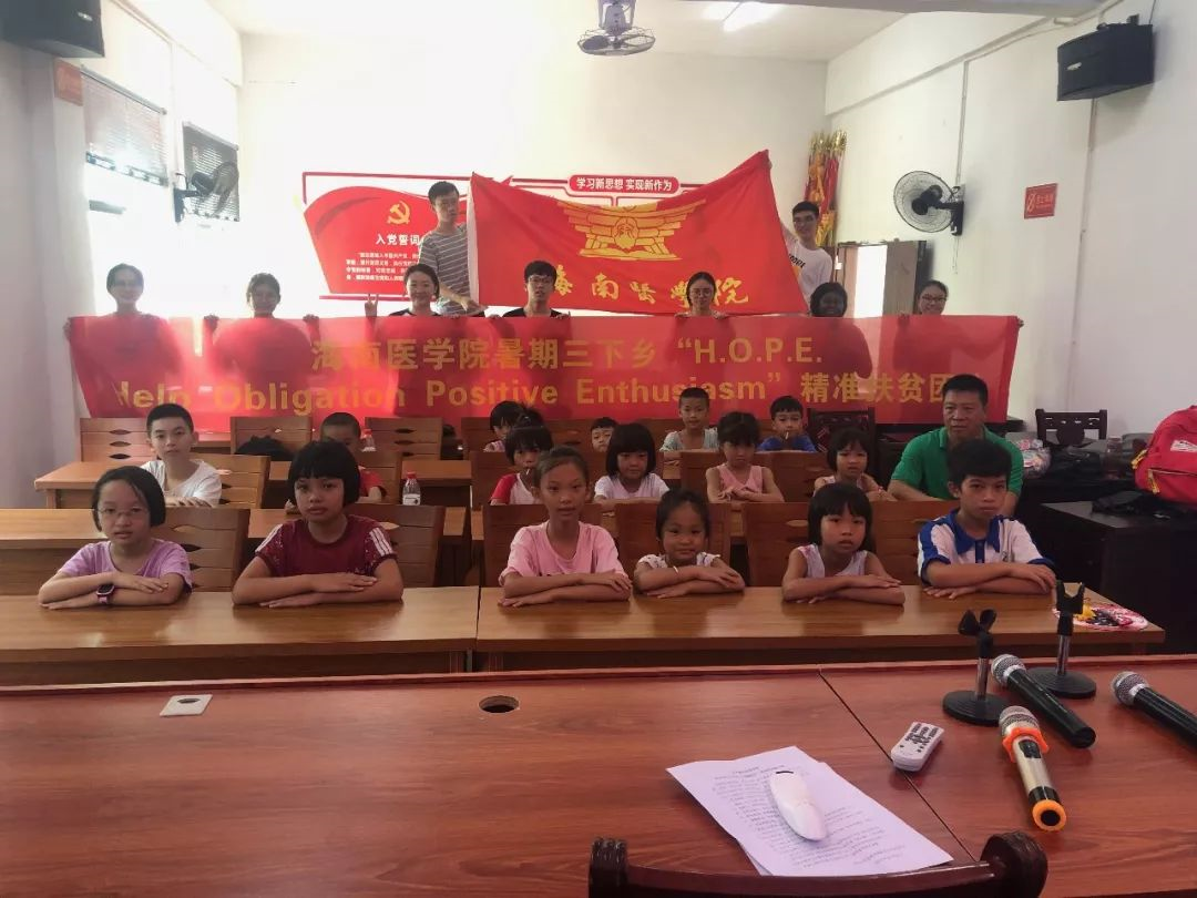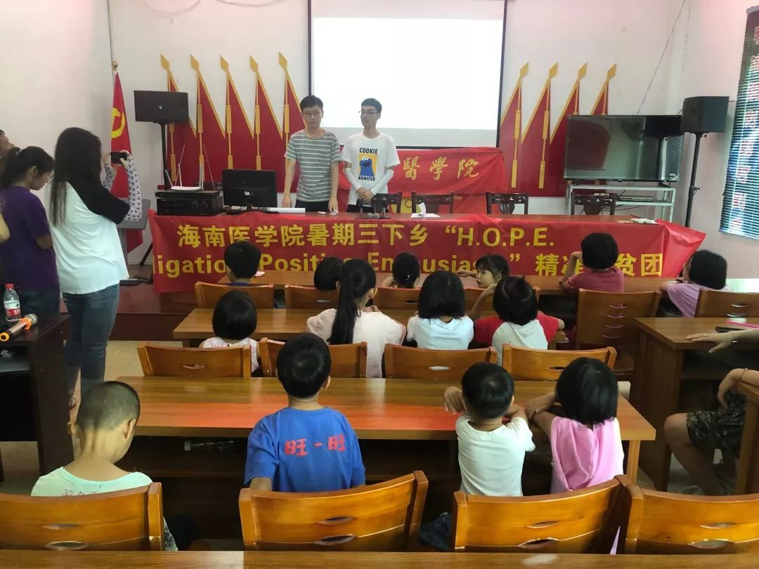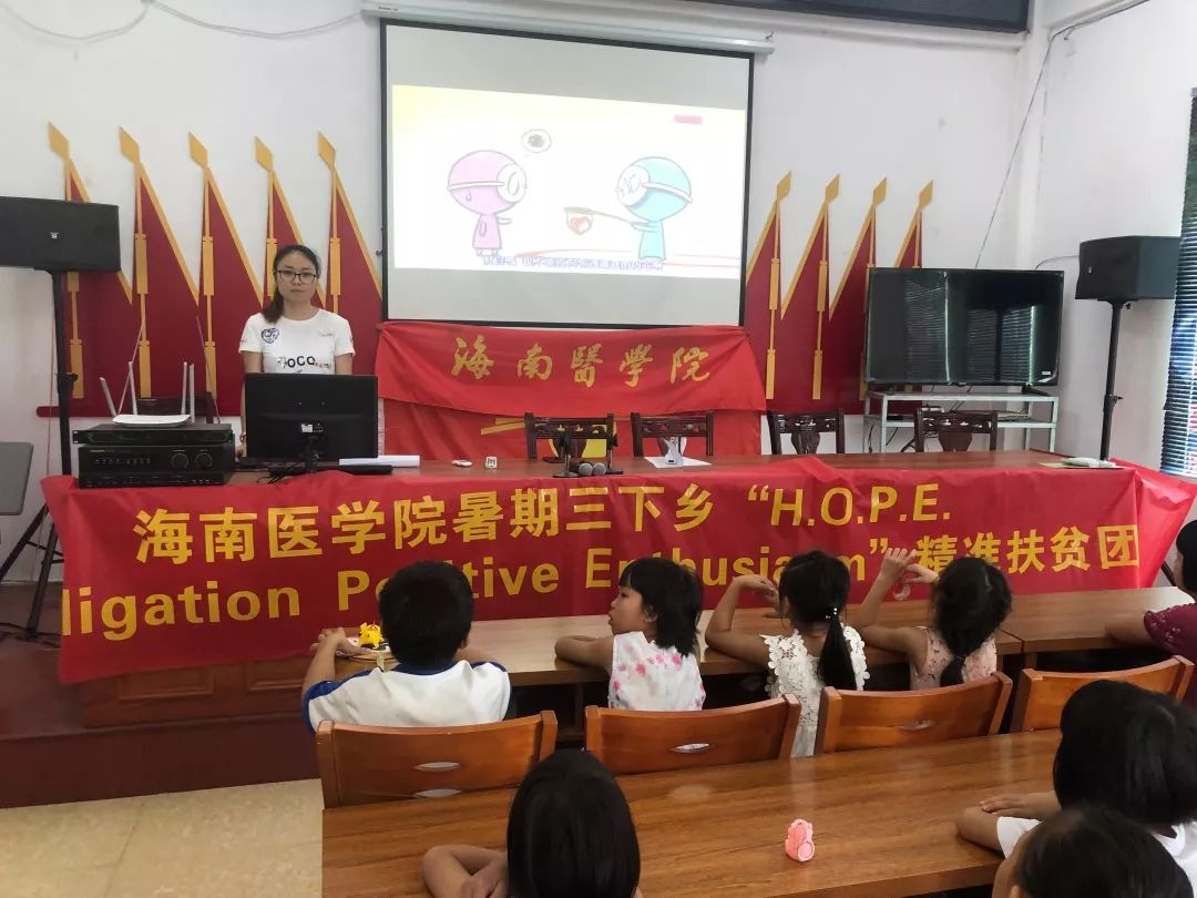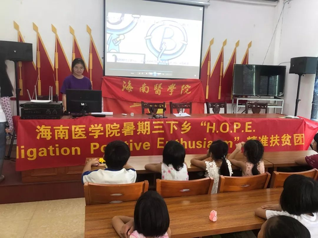 海南医学院国际教育学院H.O.P.E.精准扶贫团队开展活动的第六天。相隔数天,又到了留学生安妮的英语授课时间,今天安妮先带小朋友们复习了上次教过的字母歌和简单自我介绍,然后通过小游戏的方式教给小朋友们一些简单的单词,互动的时候,还问到小朋友们想知道哪些事物的英文,安妮也十分有耐心的一一教给他们,最后英语课结束时还教小朋友们对自己的家人表示爱意的小短句,气氛真是好温馨呀。