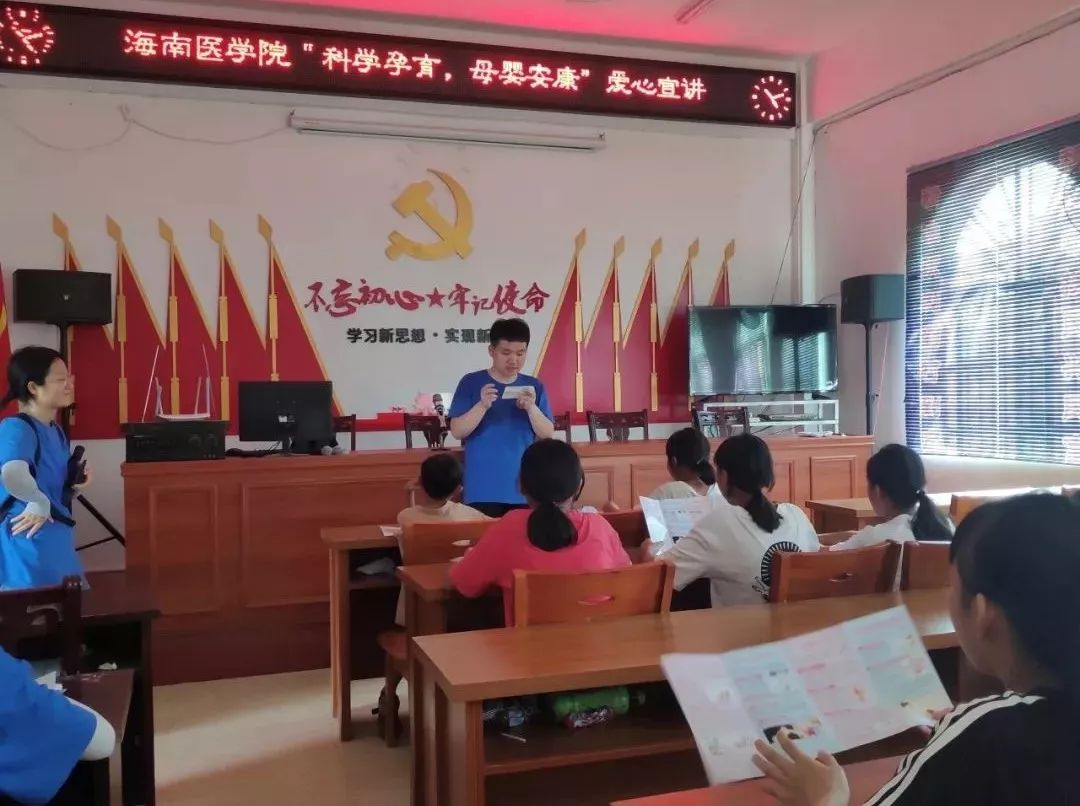 第二支志愿团队来到了乐东县番豆村及民族中学,进行以“科学孕育 母婴安康”为主题的宣讲,为此,同学们制作展板、分发宣传手册、开展教育课程,为当地村民普及科学知识。