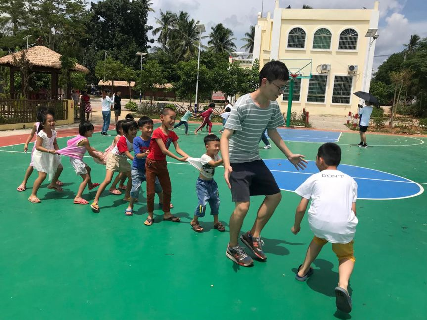 活动结束之后,我们带着小朋友们做了野外素质拓展。和小朋友们一起,我们与他们打成一片,老鹰捉小鸡的游戏是多少同学儿时的美好回忆,我们的小伙伴充当“母鸡”把身后的“小鸡们”保护的很好呢,小朋友们也十分活泼,满脸的笑容,灿烂的像正午的太阳。