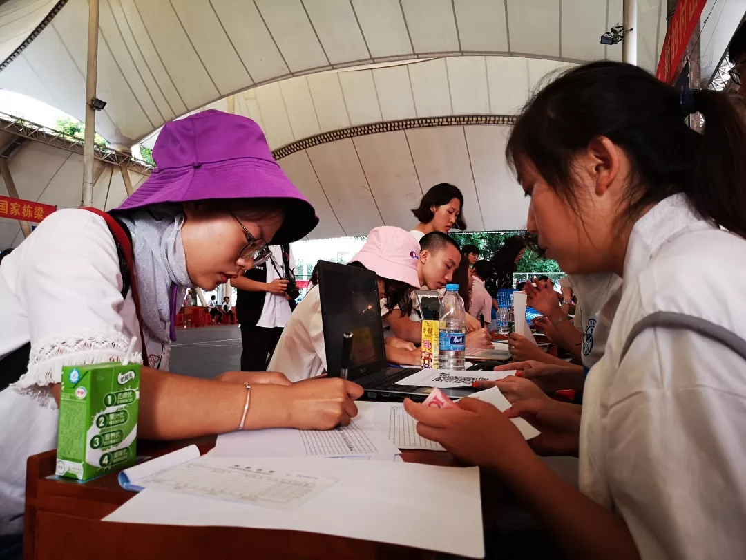 烈日炎炎也抵挡不住同学们踏入大学校园的热情