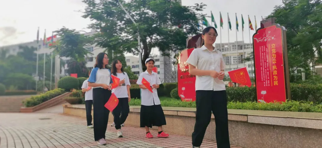 在鲜红的党旗下,让我们昂着胸向前走。在鲜红的党旗下,许下报效祖国的承诺。在党的生日的前夕,我们心系着党。每一张相片也都将是一个精神坐标,承载着初心和使命,成为我们在前进道路上战胜各种困难和风险、不断夺取新胜利的强大精神力量和宝贵精神财富。