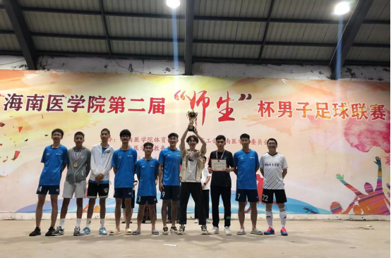 此次足球联赛不仅加强了学院师生之间的交流与沟通,丰富了校园文化生活,也体现了他们的奋勇拼搏、同心协力、不轻言放弃的良好精神面貌,更好地诠释了体育精神。师生共聚绿荫赛场,交流技战术,建立和谐融洽的师生友谊。本届“师生杯”男子足球联赛深受各参赛队的一致好评,大家期待明年再次参加比赛。闭幕式上,海南医学院校工会专职副主席成晓东老师、体育部党支部书记胡浪老师、国际教育学院书记张万科老师、体育部副主任陈基成老师、临床学院副书记王晖慧老师作为本届“师生杯”男子足球联赛的颁奖嘉宾。