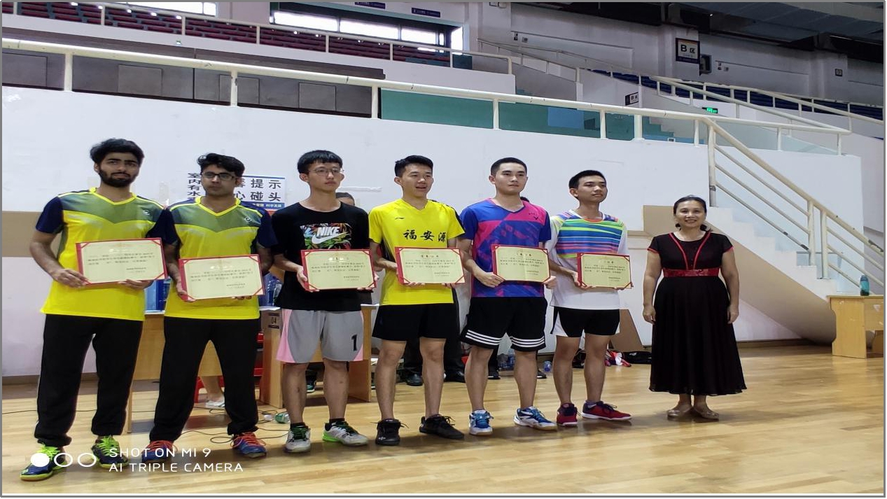 获得校学生羽毛球锦标赛各单项前三名的单位和个人
