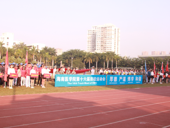 11月22日,海南医学院全校师生及附属医院教职工满怀喜悦与激动的心情,迎来属于自己的体育盛会——海南医学院第十六届田径运动会。运动会在城西校区田径场拉开帷幕,出席开幕式的领导和嘉宾有海南医学院校长杨俊、校长助理龚宁波、教务处处长谢协驹、工会副主席陈奋、体育部主任杨小东等领导以及附属海南医院、第一附属医院、第二附属医院,省安宁医院,省妇幼保健院、省肿瘤医院代表团、各二级学院运动员及海南医学院全体师生,开幕式由谢江波副书记主持。