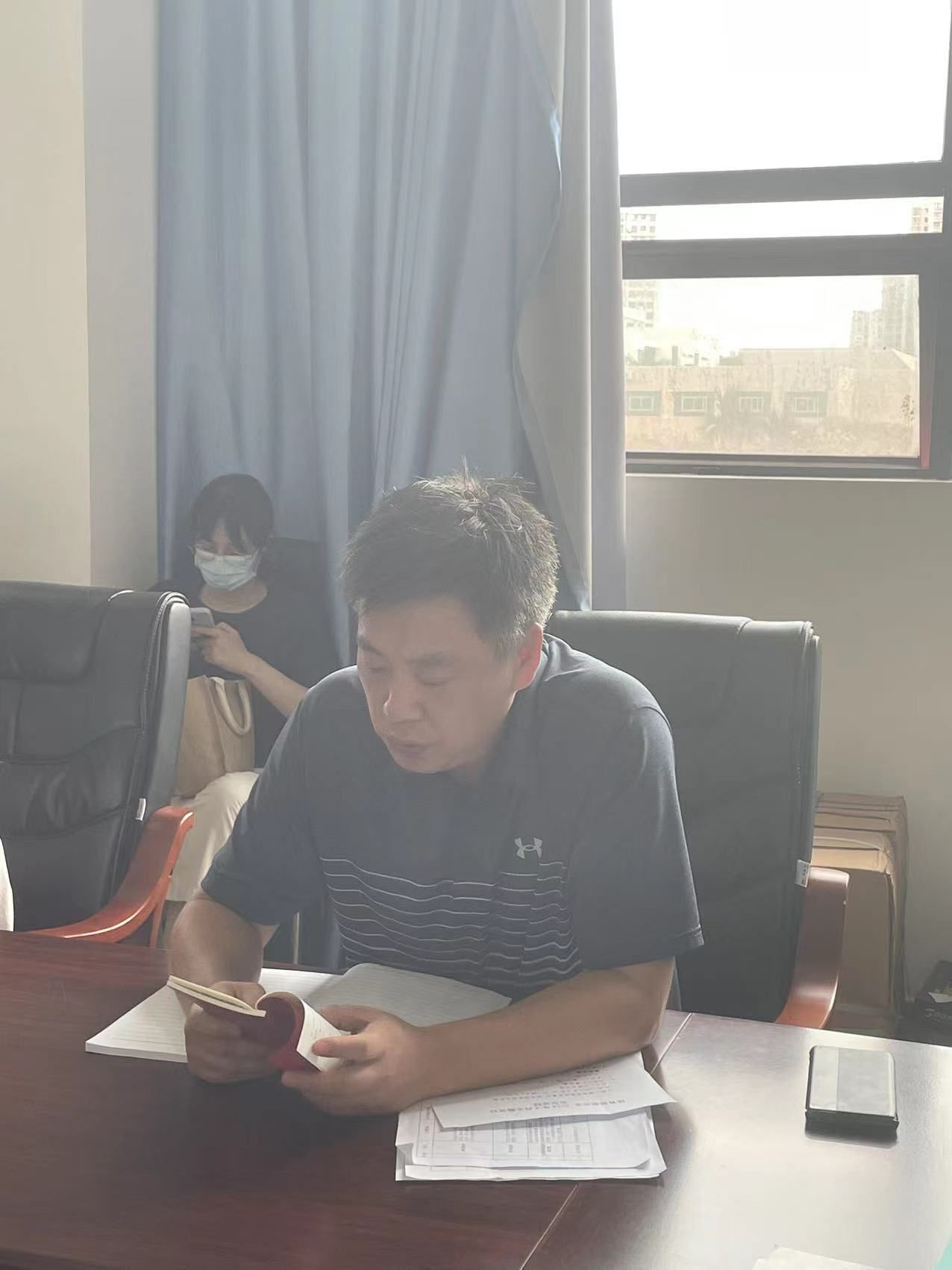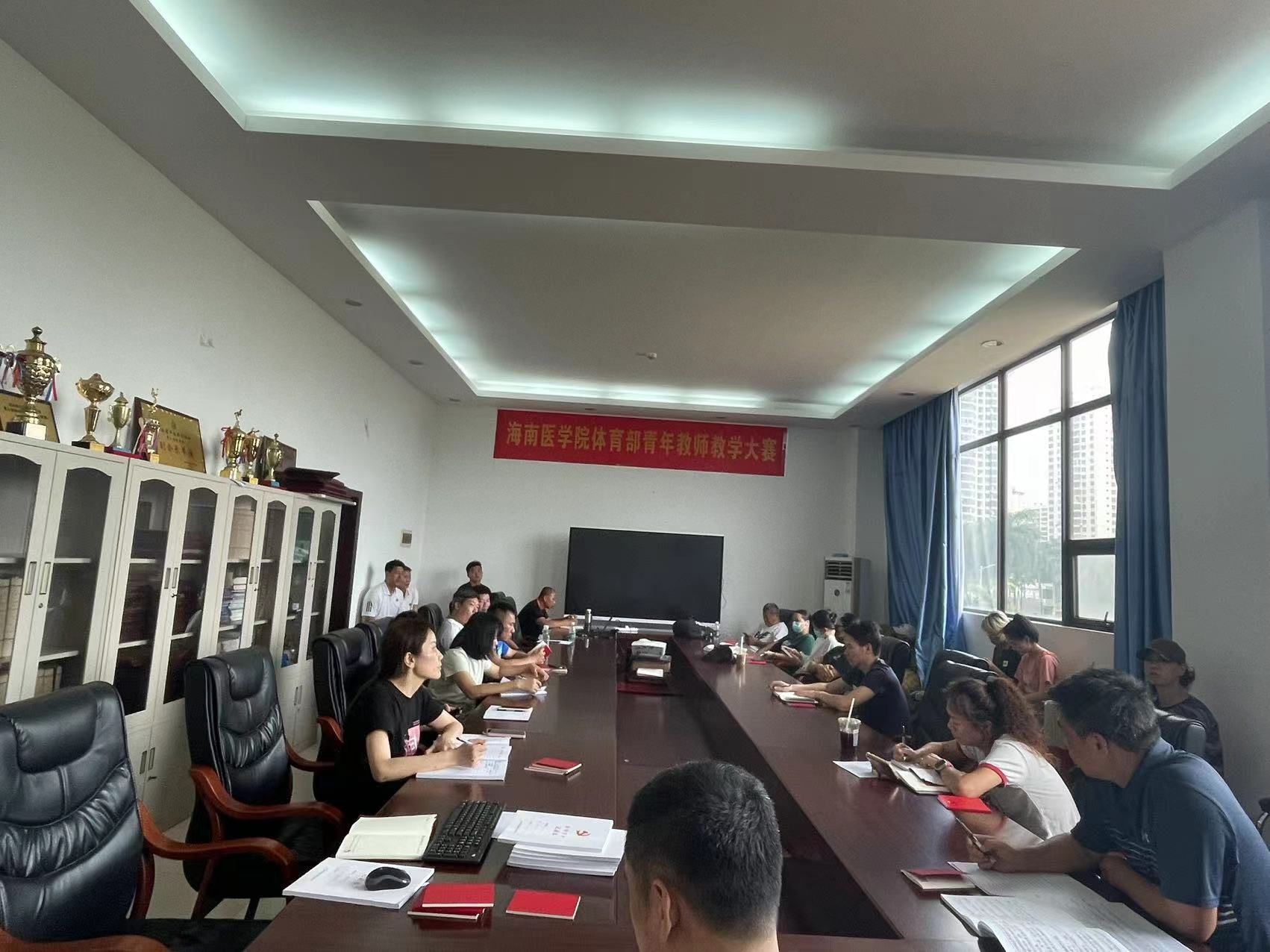 4月24日上午,体育部党总支在子文体育馆二楼会议室召开4月份主题党日活动暨党纪学习教育读书班第一次学习,会议由党总支书记蒙铂巍主持,全体党员参加学习。