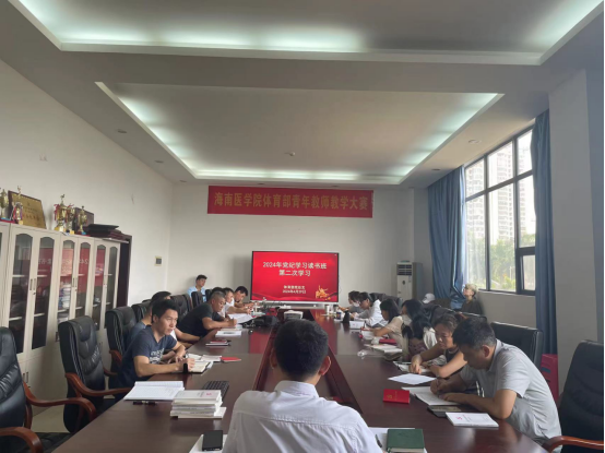 4月29日上午,体育部党总支在子文体育馆二楼会议室开展党纪学习教育读书班第二次学习,会议由党总支书记蒙铂巍主持,全体党员参加学习。