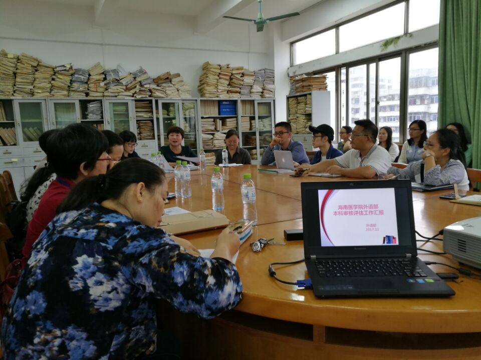 2017年11月4日下午4点,林英姿副校长率领学校其他领导来到外语部,就外语部申大评估准备工作进行检查指导。林副校长一行先到来到位于第一教学楼的外语部教师办公室问候正在紧张加班的教师和检查各个教研室的资料收集情况,随后,在外语部五楼办公室和外语部全体教师进行座谈。