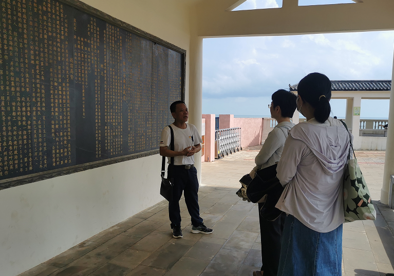 参观过程中,同志们认真聆听外语部党总支殷霆书记讲解人民解放军在玉包港登陆作战的相关历史。当时,形势敌众我寡,解放军与国民党守军进行殊死搏斗,子弹、手榴弹打完了,就用木头、石块、刺刀、枪托与国民党军厮杀。人民解放军90余名指战员壮烈牺牲。雷公岛战斗是此次登陆作战最悲壮、最惨烈的战斗。