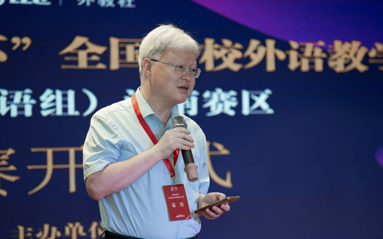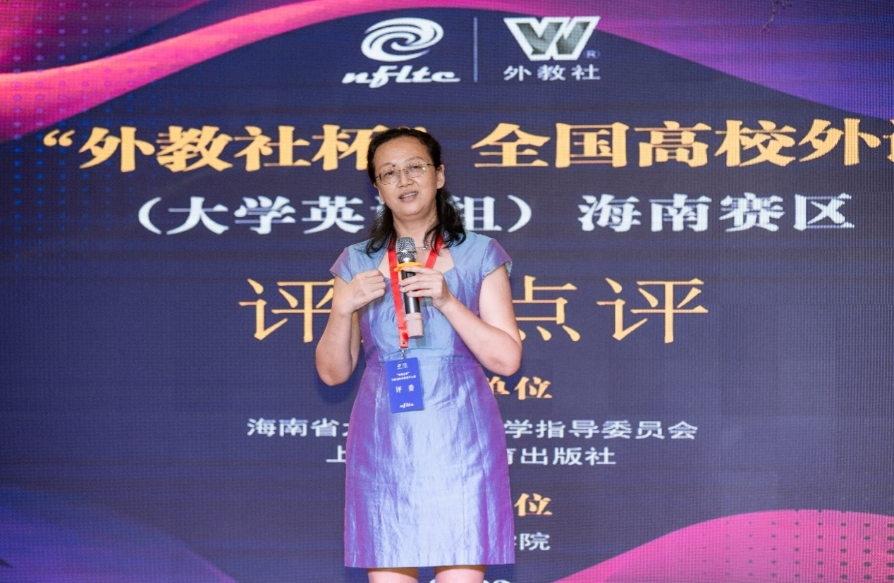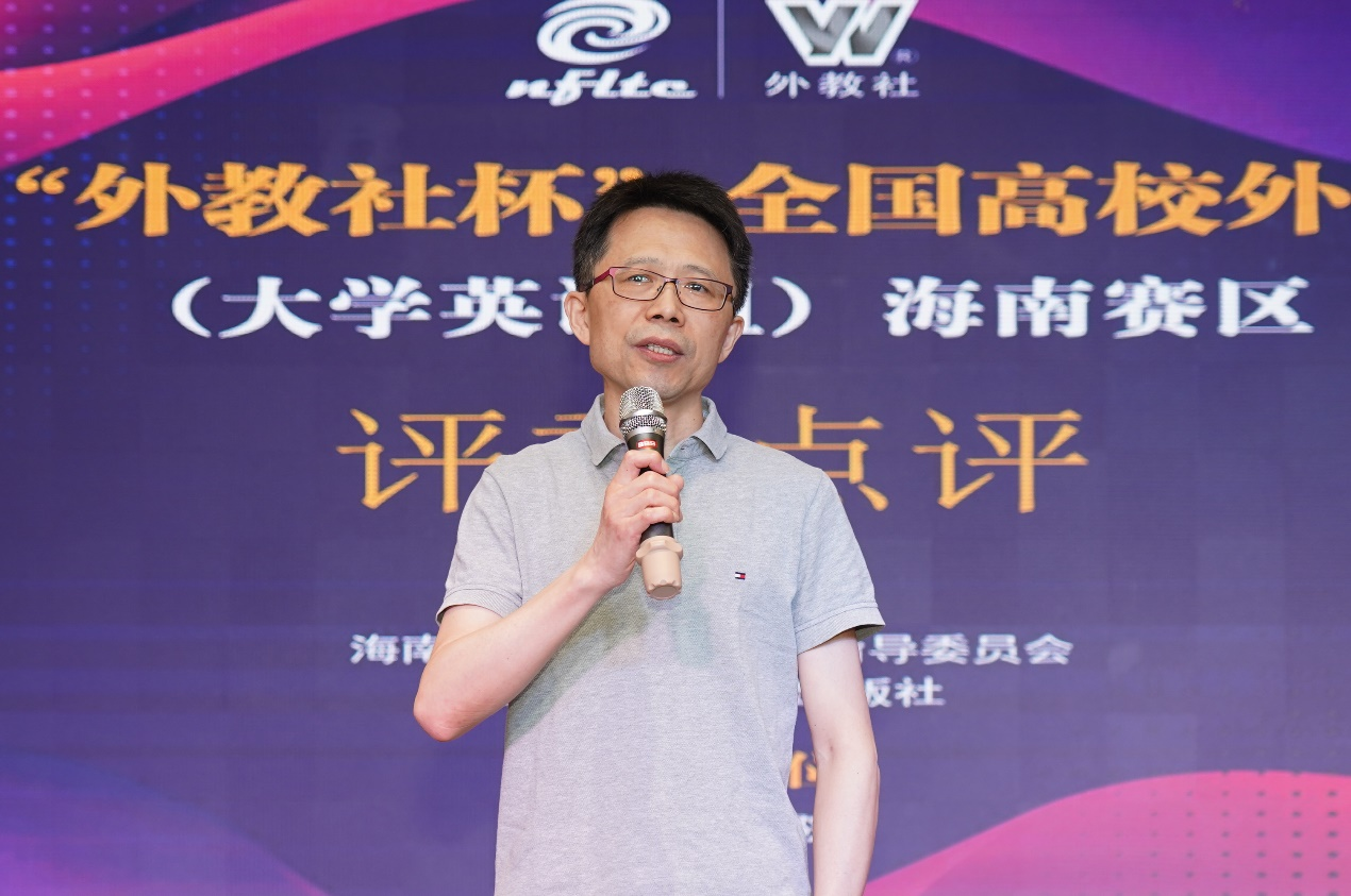 颁奖典礼上,海南省大学外语指导委员会秘书长杨蕾达教授在致辞中对大赛全程的组织运行表示肯定与赞许。上海外语教育出版社黄卫副社长也表示,希望借助“外教社杯”赛事,进一步深化全国高校外语教师之间的交流与合作,继而搭建具有代表性的高校外语教师合作平台,打造教研一体的外语教师队伍建设共同体。
