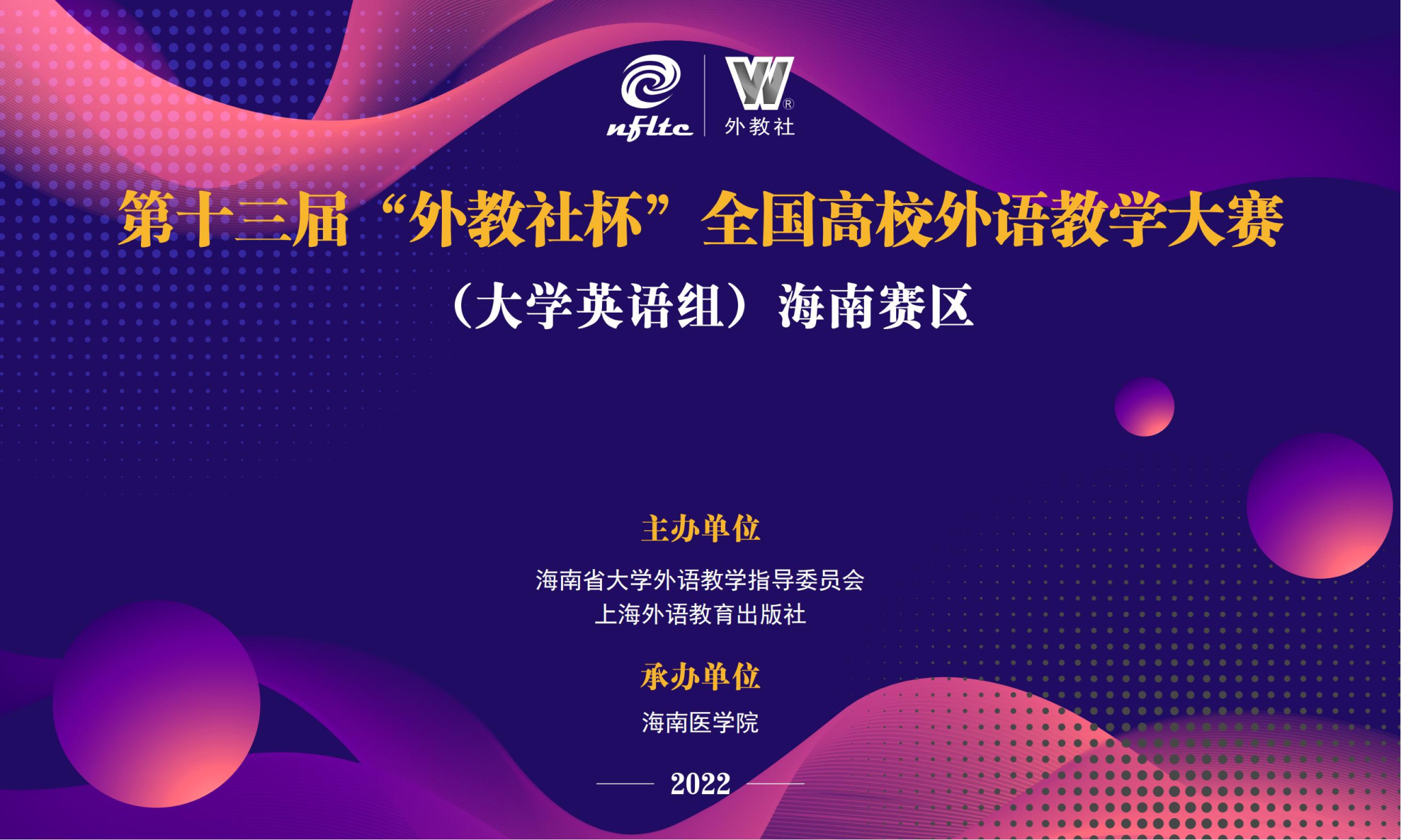 仲秋南岛,清风送爽。2022年11月5日,由海南省大学外语教学指导委员会和上海外语教育出版社共同主办,海南医学院承办的第十三届“外教社杯”全国高校外语教学大赛(大学英语组)海南赛区决赛在海口圆满落幕。本次大赛得到了教务处,宣传部,校团委,学工部等多部门的大力支持。教务处为大赛提供了重要的设备保障支持,校团委、学工部为赛事派出了10余名志愿者鼎力协助,宣传部亦派出两位专业摄影师对大赛全过程进行了实时跟拍,大赛间隙也滚动播放了海南医学院最新宣传片,在全国性赛事中全面地展示了taptap点点近年来的发展伟绩。