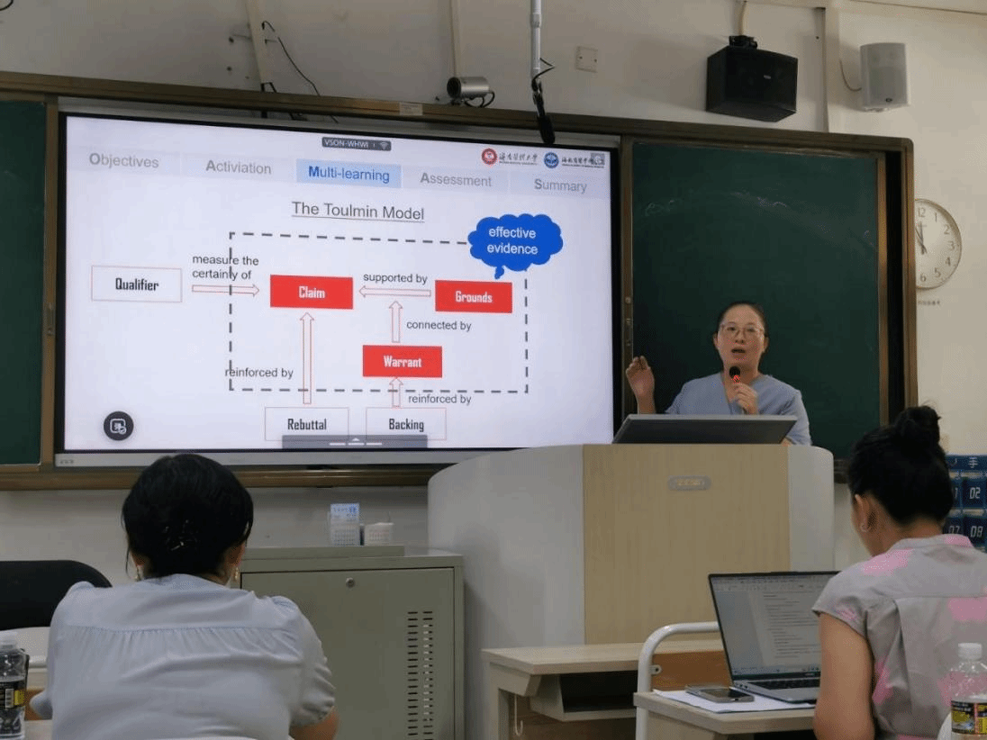 参赛教师集中展现了外语教学改革与跨学科融合的前沿探索成果:王飞老师创新融合“Toulmin”思辨模型与“RUIN”教学模型,将议论文论据有效性这一抽象概念进行具象拆解,巧妙融入大学英语教学环节,让逻辑分析能力培养与语言习得深度结合;蒋慜老师与李伟老师分别围绕外语部2025年秋季学期新开课程“医学英语口语”“社会医学英语”,基于新教材体系呈现了专业化教学设计;其他参赛教师则结合往届学生实时反馈,在“理解当代中国”精品课程及人文素养限选课中展示了迭代升级的教学改革成果。