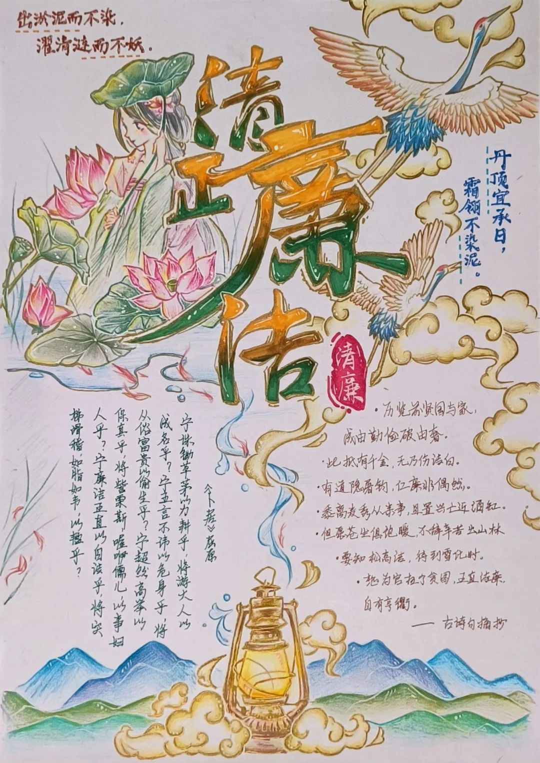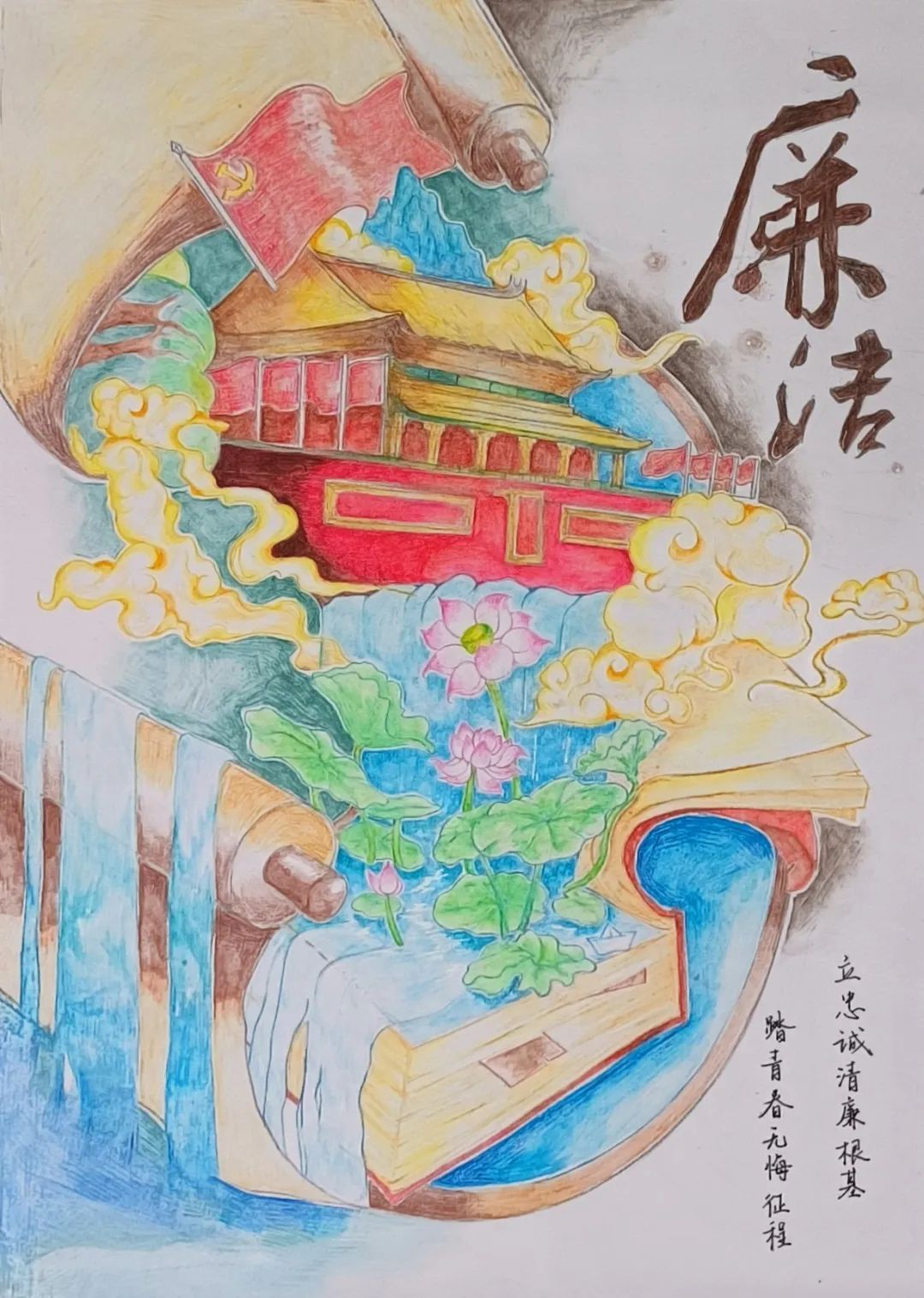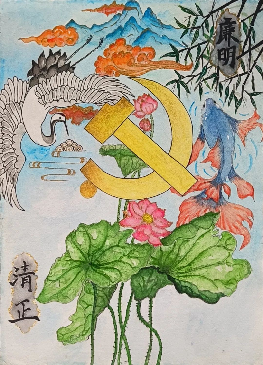 《荷香故里,清廉振国》| 生物医学信息与工程学院 李杨敔《清廉图》| 管理学院 李小彤《鹤舞清风》| 药学院 陈语诺