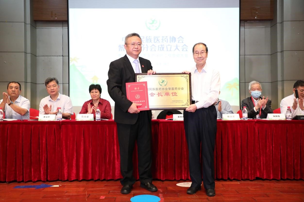随后,中国民族医药协会常务副会长兼秘书长李文亮宣布中国民族医药协会黎医药分会成立。中国民族医药协会会长葛忠兴向分会会长授牌、颁发证书,主席台领导向分会副会长、秘书长、副秘书长颁发证书。