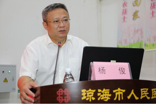 揭牌仪式结束后,杨俊校长发表热情洋溢的讲话。他说“今年是十三五收官之年,是十四五开启之年,医院处在一个关键的时期,医学教育面临着很大的挑战,需要推进临床教学改革发展,提升全省医疗机构服务水平,为海南自贸港、海南健康产业培养更高层次的人才,在海南自贸港未来东西南北中区域医疗做出更大贡献,琼海市人民医院挂牌海南医学院附属琼海市人民医院,学校将在人才队伍建设、学科建设、科研立项、成果申报、资源共享平台等方面给予力所能及的指导和支持。”同时他希望,琼海市人民医院以挂牌海南医学院附属琼海市人民医院为契机,不断提升教学水平和科研能力,增强师资队伍建设,与学校共同发展,实现双赢的目标。
