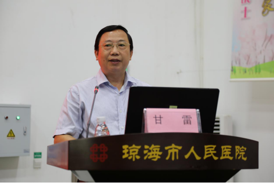 琼海市卫健委主任甘雷参加签约揭牌仪式并发表讲话