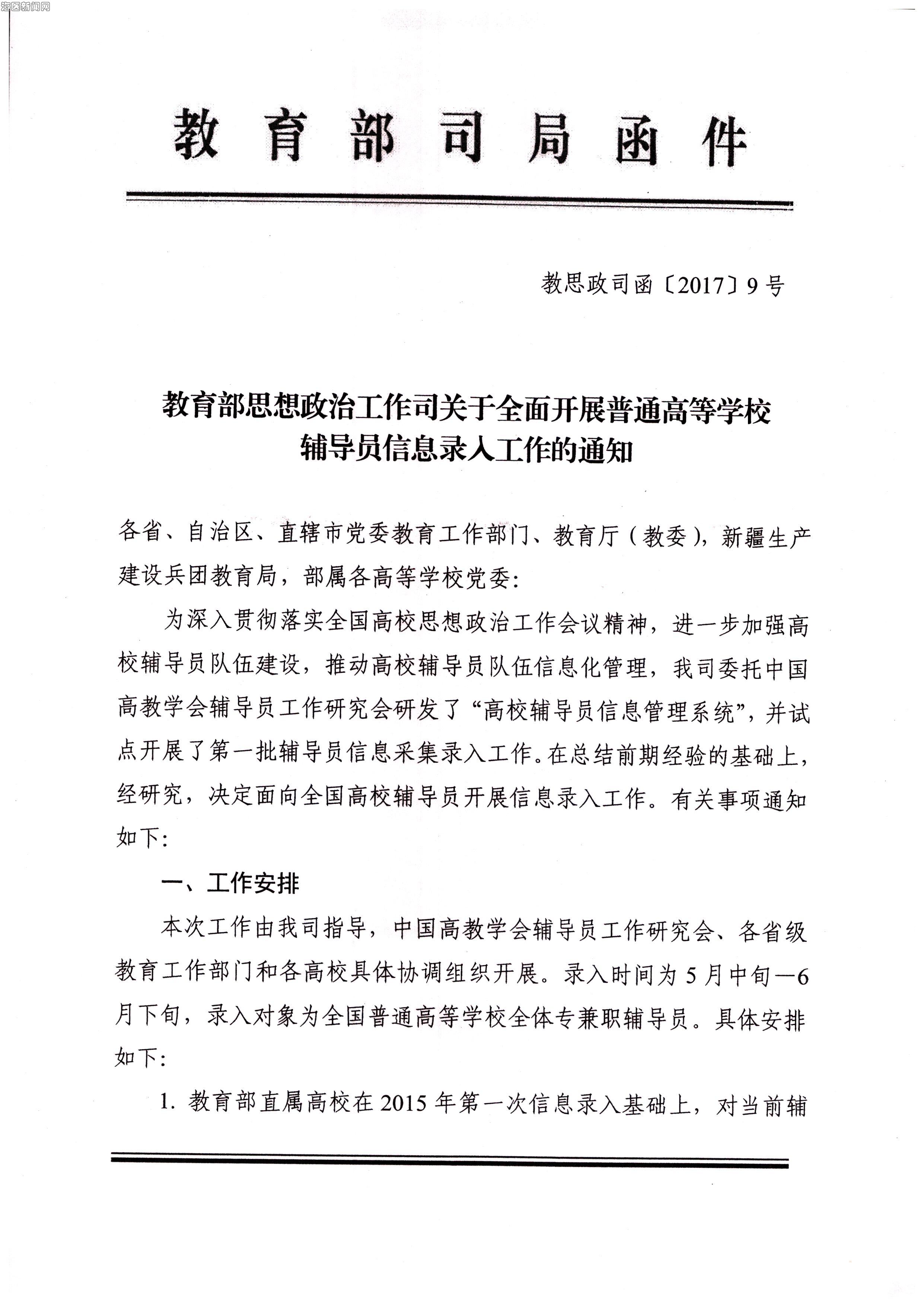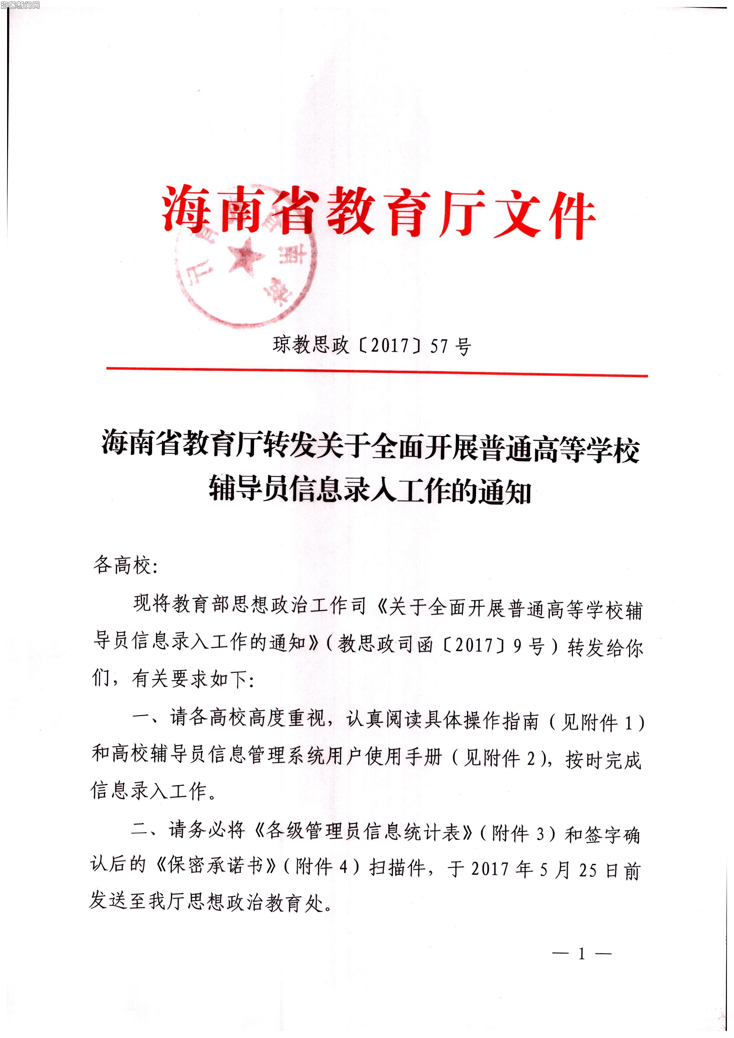 海南省教育厅转发关于全面开战普通高等学校辅导员信息录入工作的通知