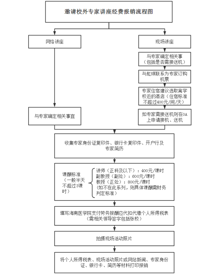 邀请校外专家讲座经费报销流程图