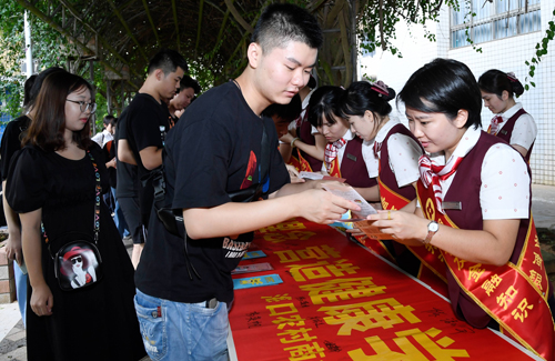 讲座结束后,学生们纷纷在防范非法校园贷的宣传横幅上签字,共同发出“倡导理性金融消费观念,营造健康学习氛围”的倡议。在讲座外场,海口农商银行工作人员向过往的师生共发放《个人信息保护知识》《严厉打击套路贷》《征信知识宣传》等金融知识宣传手册1万余份。