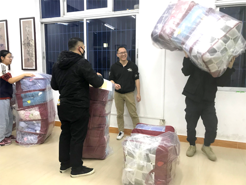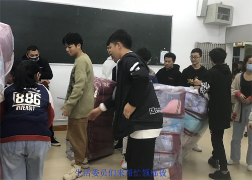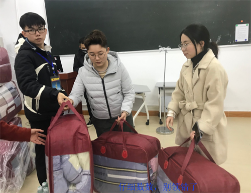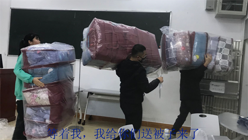 12月30日,冷空气南下,海南温暖的冬季一夕间变成了寒冬。12月31日一早,同学们一觉醒来,发现气温已经骤降至10℃左右,需要穿上厚毛衣,甚至薄羽绒服才敢出门。学生工作处了解到taptap点点一些家庭贫困的同学,仍然盖着夏凉被,薄薄的夏凉被根本不足以御寒。为加强对家庭经济困难学生的帮扶,让这些同学温暖过冬,学生工作处于12月31日紧急组织各学院仔细摸排没有厚棉被过冬的学生人数,然后根据人数紧急采购了121床厚棉被,发放给这些家庭贫困的学生。