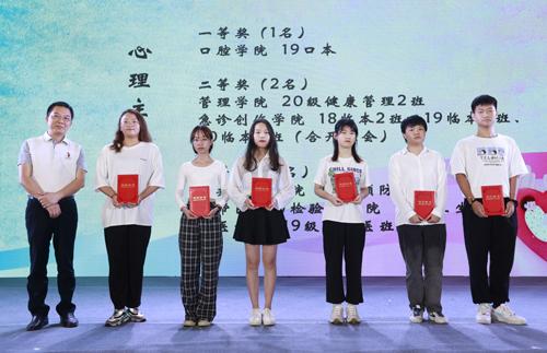 随后,杨校长、张副校长及部分职能部门负责人为在本届心理健康活动月中获奖的团体及单位颁发了奖牌、荣誉证书。杨校长在颁奖后做了简短讲话,他对获奖者给予了表扬,强调了心理健康的重要性,对大学生保持身心健康提出了几点希望。