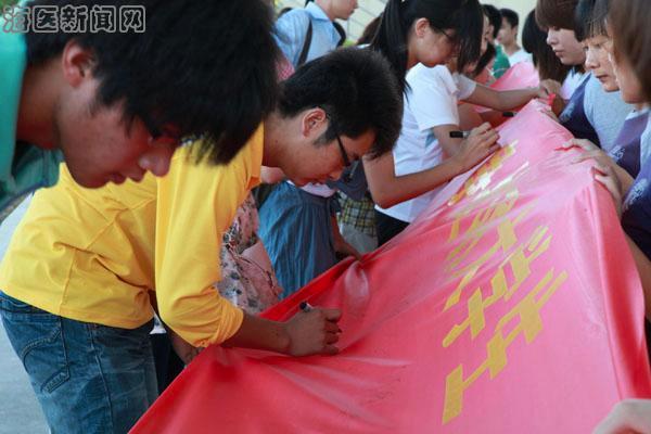 接着,参加仪式的全体教师、2010级学生代表纷纷上台签名,以表付诸于实际行动,不断提升自己文明素养的决心。