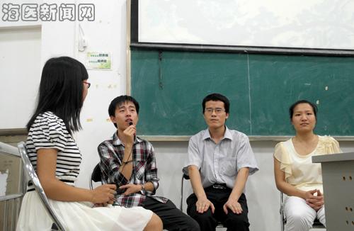 在主题沙龙访谈环节,09级的三位同学柯渠青,王亚东,邓丽媛以各自的亲身经历,从不同的方面,跟大家分享了他们的成绩与经验,柯渠青结合自己的实际工作给大家讲解了如何做好一名干部;王亚东则通过艰苦的奋斗史给大家讲述了一个贫穷人家孩子为了大学梦而付出的诸多艰辛;邓丽媛则讲述了如何因为身体残疾而自卑,但最终走出自卑的心理,成为了一名“身残志坚”的好学生。他们还为低年级学生提出了一些生活和学习建议。
