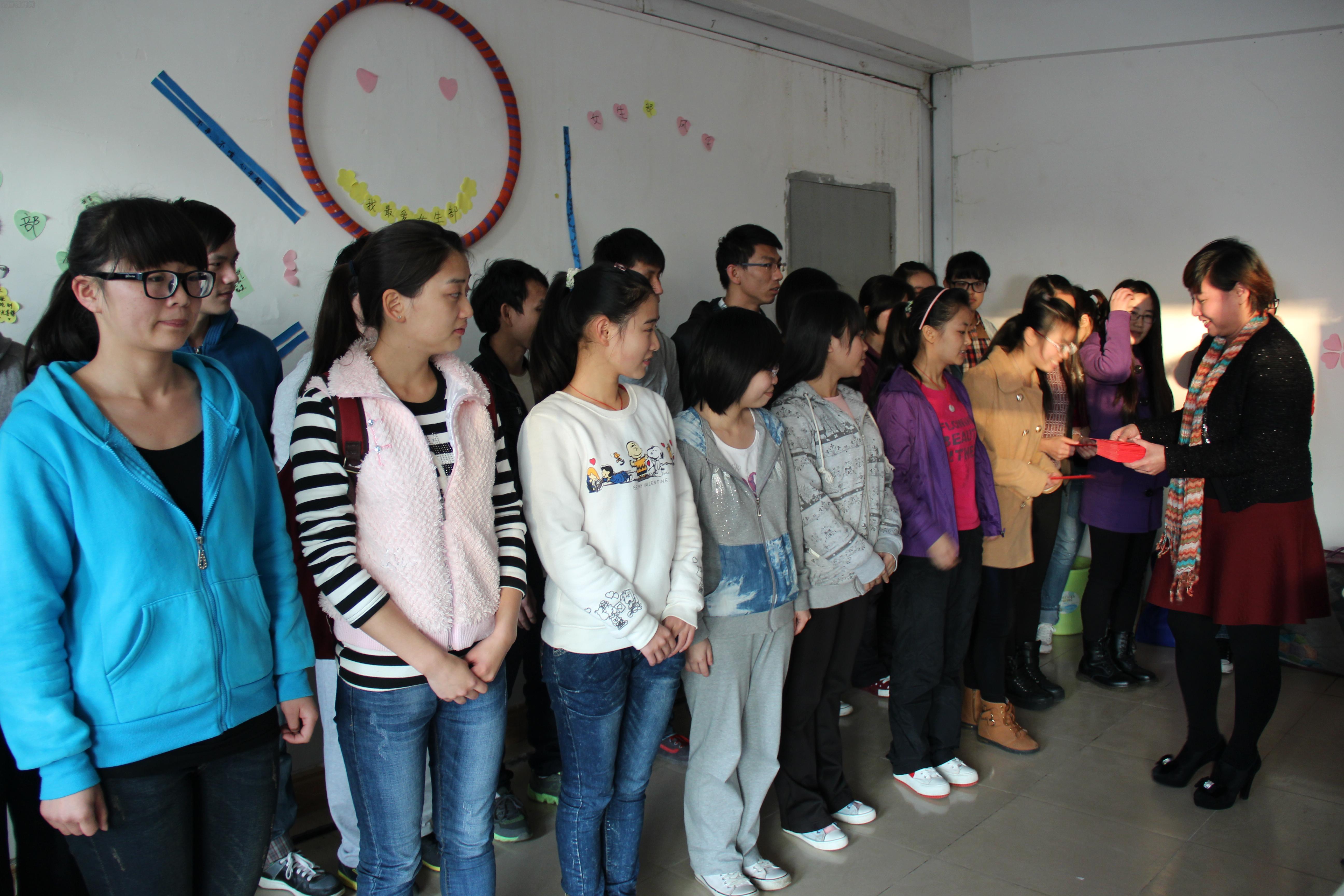 2015年1月15日下午17:30,taptap点点在学生公寓E栋二楼文化室举行了暖意融融的春节慰问金发放仪式。副校长林英姿,学生工作部冯武部长,余伟新副部长,曾梅副部长,财管中心、新闻宣传部相关负责人,相关班级辅导员以及30名贫困学生参加了本次慰问活动,林英姿副校长向贫困学生发放了春节慰问金。 林副校长告诉同学们,困难是暂时的,无论家在哪里,遇到什么困难,都有海南医学院这个温暖的大家庭做坚强的后盾。她勉励同学们,要努力学习文化知识和技能,同时通过分享一个身边的小故事希望同学们怀有一颗感恩的心,用自己的实际行动来回报学校和社会,回报帮助过自己的人,努力做力所能及的好事,做一个身正、心善、学高的好学生,自信地走向社会,自强地立足社会。