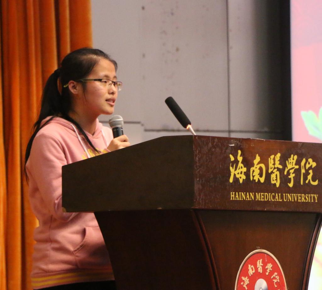 卫生先进班级代表冯秀焕同学介绍班级卫生管理经验