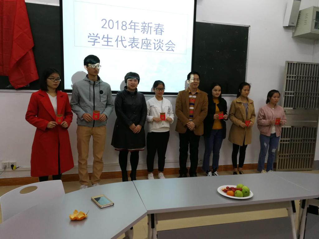 为学习贯彻党的十九大精神和全国高校思想政治工作会议精神,进一步树立以学生中心的服务理念,倾听广大同学心声,疏导学生思想,解决学生最关切的学习、生活等方面的实际问题,传达学校对同学们的新春问候与祝福,1月11日下午17:30,林英姿副校长在大学生中心主持召开了2018年新春学生代表座谈会。来自13个学院的48名贫困生代表以及学生工作处邝家旺处长、高中桥老师与参加了此次座谈会。