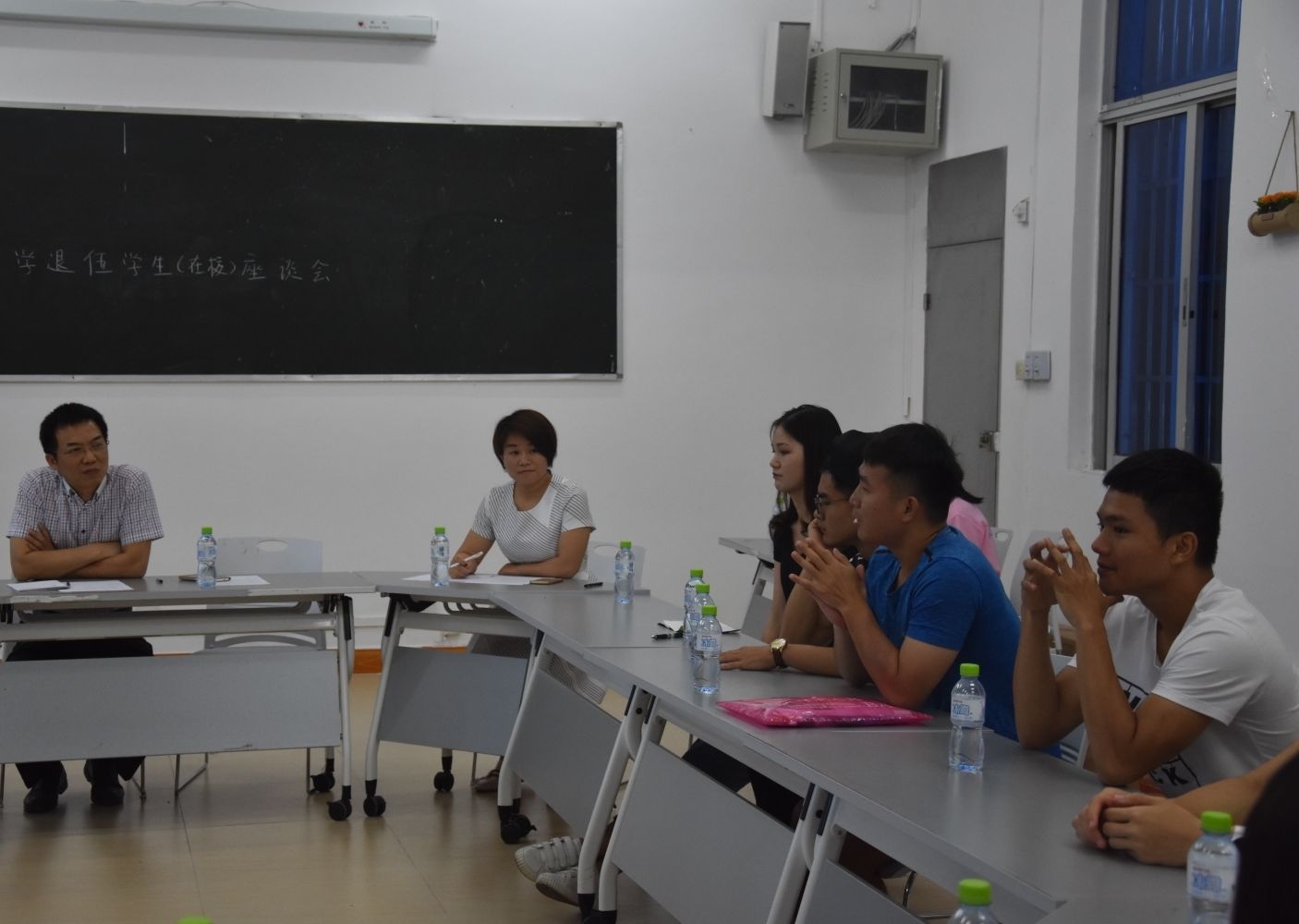5月16日下午,学生工作处在大学生中心素质拓展室召开退伍学生(在校)座谈会。座谈会由学生工作处处长邝家旺主持,学生管理科科长徐芳芳和陈鑫等十四名退伍学生参加。