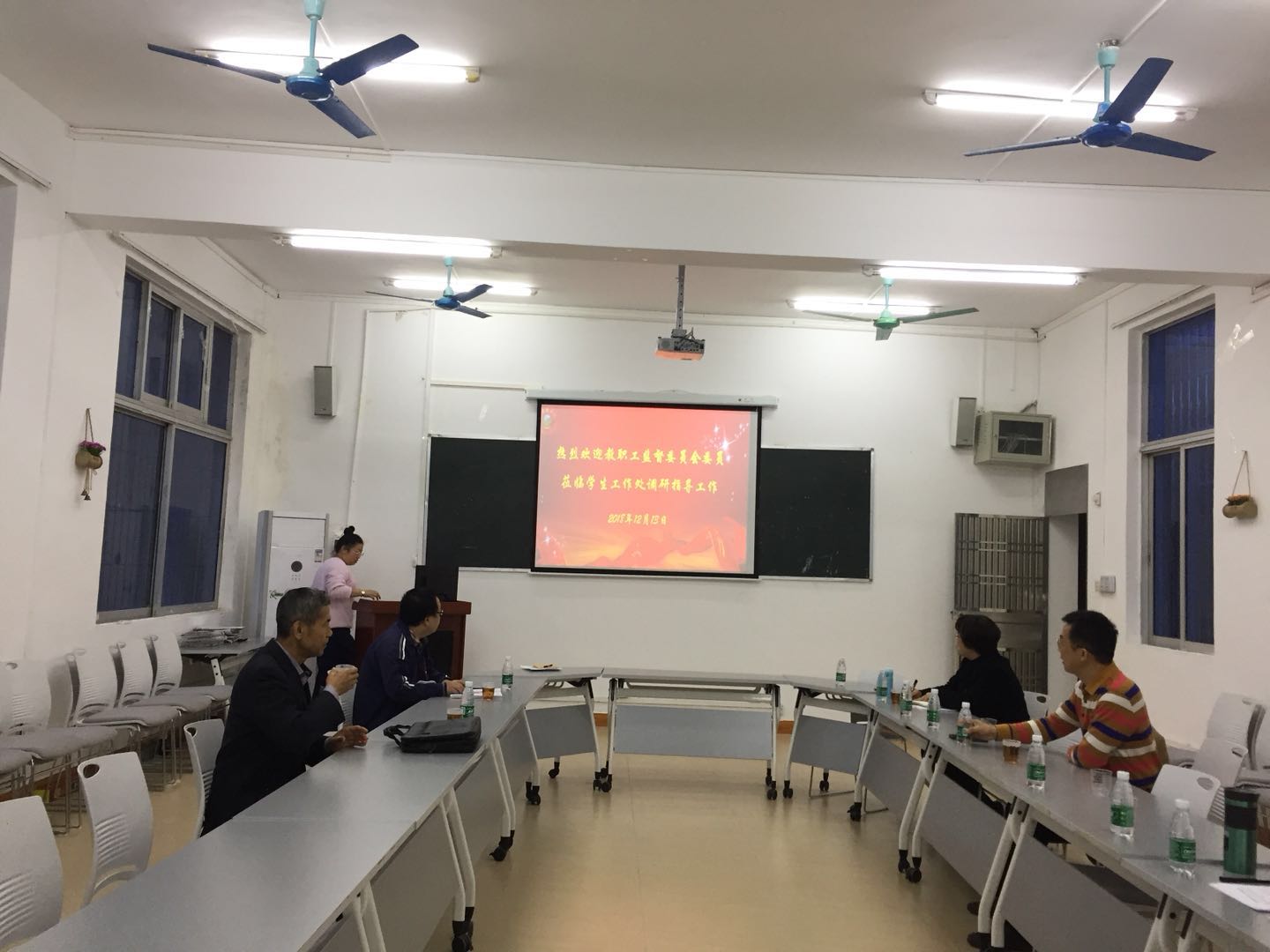 12月13日下午,教职工监督委员(以下简称教监督委)由主任委员陈玉民带队对学生工作处进行了调研质询。调研质询工作在大学生中心素质拓展室进行。教监委副主任委员袁和委员徐芳芳,学生工作处邝家旺处长、张一丹、李春花、李丹等学生工作处人员参加了调研质询。