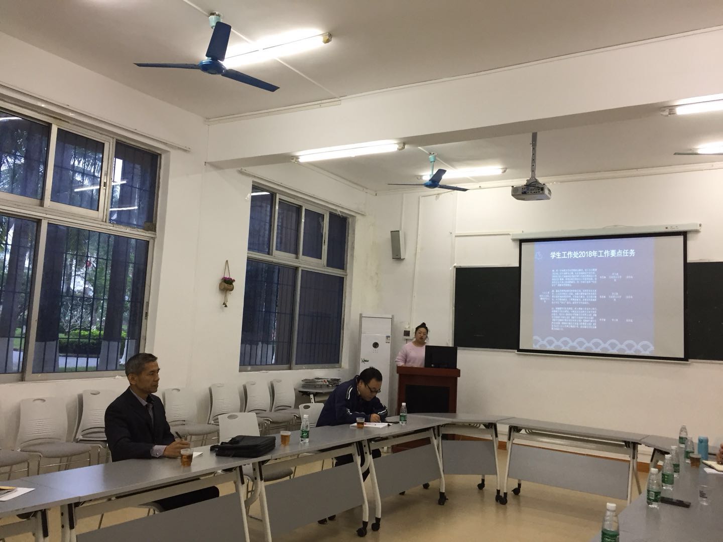 会议伊始,学生工作处思想教育科张一丹科长就本学期学工处思想教育及日常管理工作进行了全面的汇报。首先,为进一步加强taptap点点学生思想政治教育,学生工作处积极开展了一系列学风建设活动,狠抓纪律,对违纪学生给与了相应的处分。在强化思想教育和价值观引领方面,积极开展了包括诚信、安全、心理等模块在内的专项教育,成立“大学生事务中心”等学生“四自能力”培养的平台,承办海口市2018年“世界艾滋病日暨禁毒工作”活动。