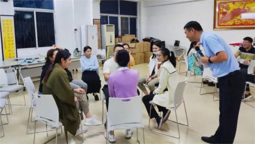 最后,张荣老师以多个团体辅导活动为例,具体细致地讲解开展学生团体辅导活动的要点,辅导员们针对以上活动的开展提出自己的问题,张荣老师也对问题进行了详细全面的解答。