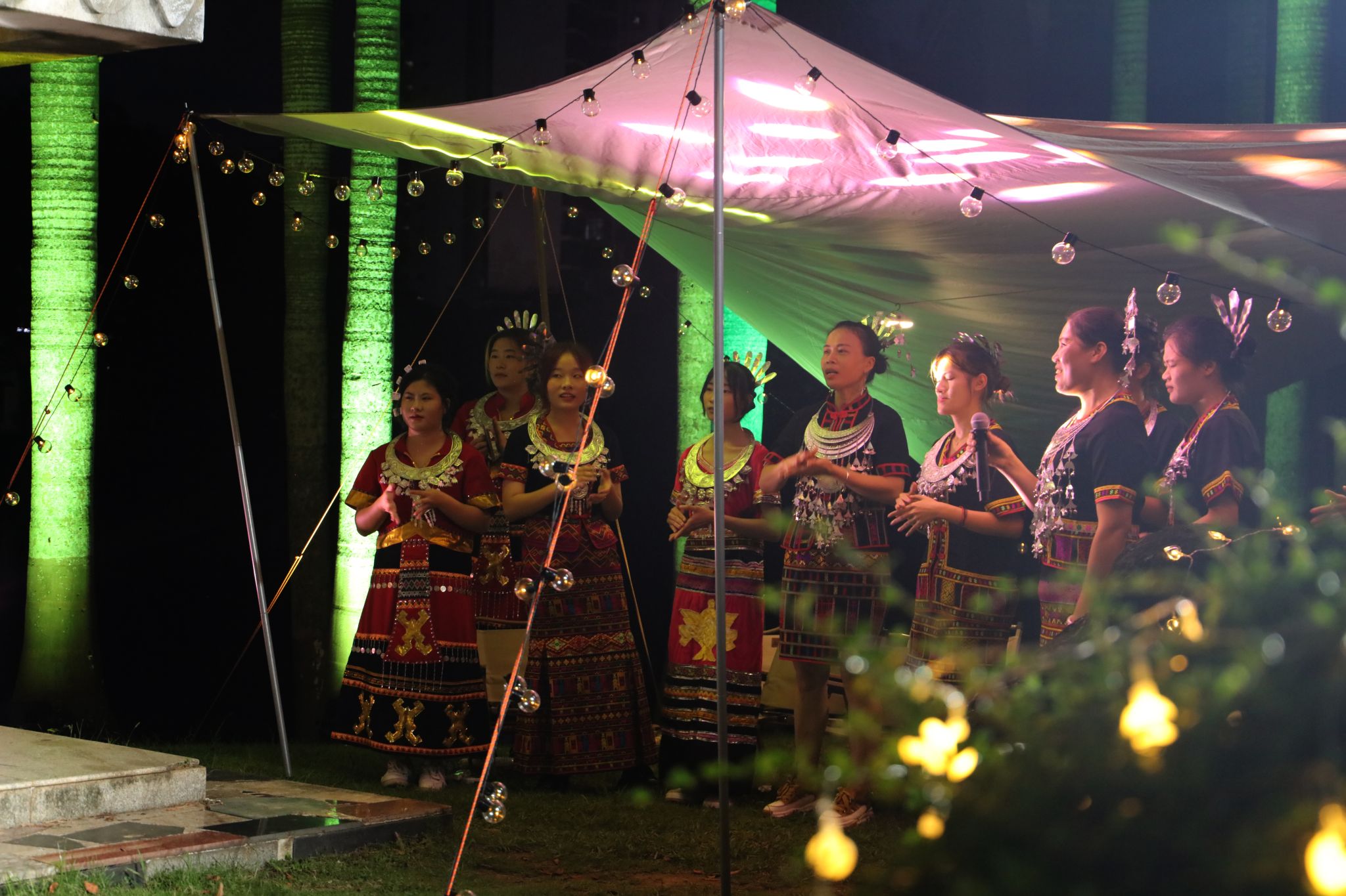 6月9日晚,学生工作处在城西校区成梅亭举办了一场小型黎歌音乐会,150余名师生现场观看。此次活动特别邀请taptap点点劳动实践基地特聘教师、琼中黎族苗族自治县上安乡黎族民歌传承人王雪兰、王兰两位老师参加。音乐会还通过网络直播,线上浏览量超过2.2万。