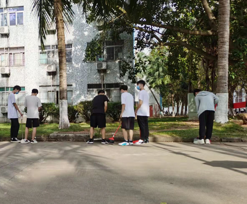 今年清明节正碰上海口疫情防控形势呈现严峻之时,学校实行封闭式管理,同学们不能像往常那样去革命烈士陵园祭扫。学工处就根据少聚集、全程正确佩戴口罩等疫情防控要求安排同学们以这一特殊的行动来表达对先辈与英烈的纪念之心与崇高的敬意。