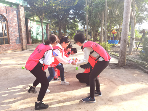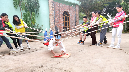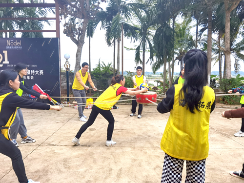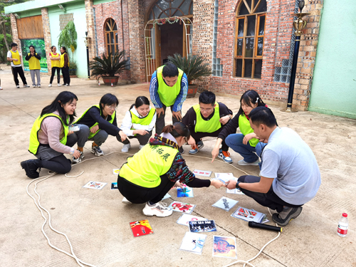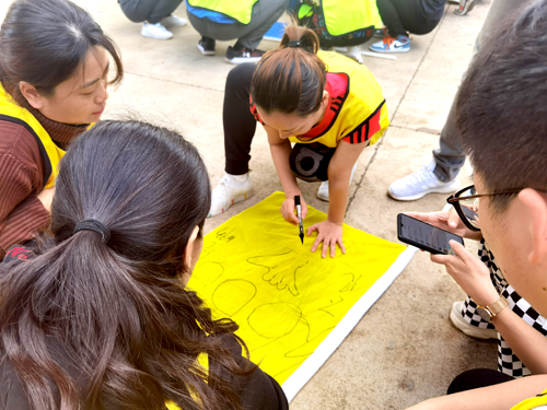案例督导结束后,老师们开展了心理素质拓展活动。活动共分为三个阶段,第一阶段为破冰之旅,第二阶段是小组比拼,第三阶段为“拆弹专家”项目中,这个项目难度高,需要团队齐心协力,密切合作才能完成。