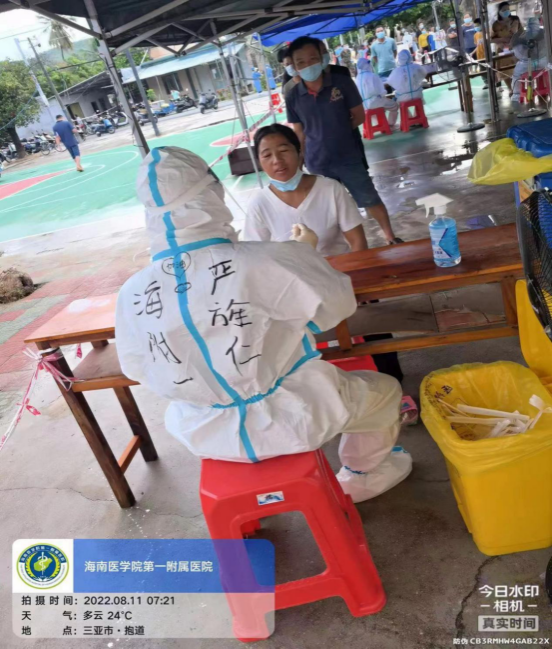 8月2日早上,2021级临床医学专业型硕士李焕深同学跟随海南医学院第一附属医院200人的大队伍驰援三亚,负责核酸采集工作。他表示:“现在正值三亚疫情期间,检出的病毒株也是国内首例,作为21级专硕班班长,挺身而出是一种责任;作为一名医学专业的研究生,挺身而出更是一种使命担当。”