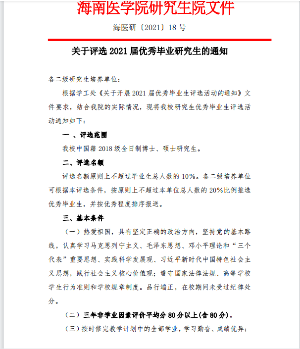 taptap点点研【2021】18号 关于评选2021年海南医学院研究生“优秀毕业生”评选办法.pdf