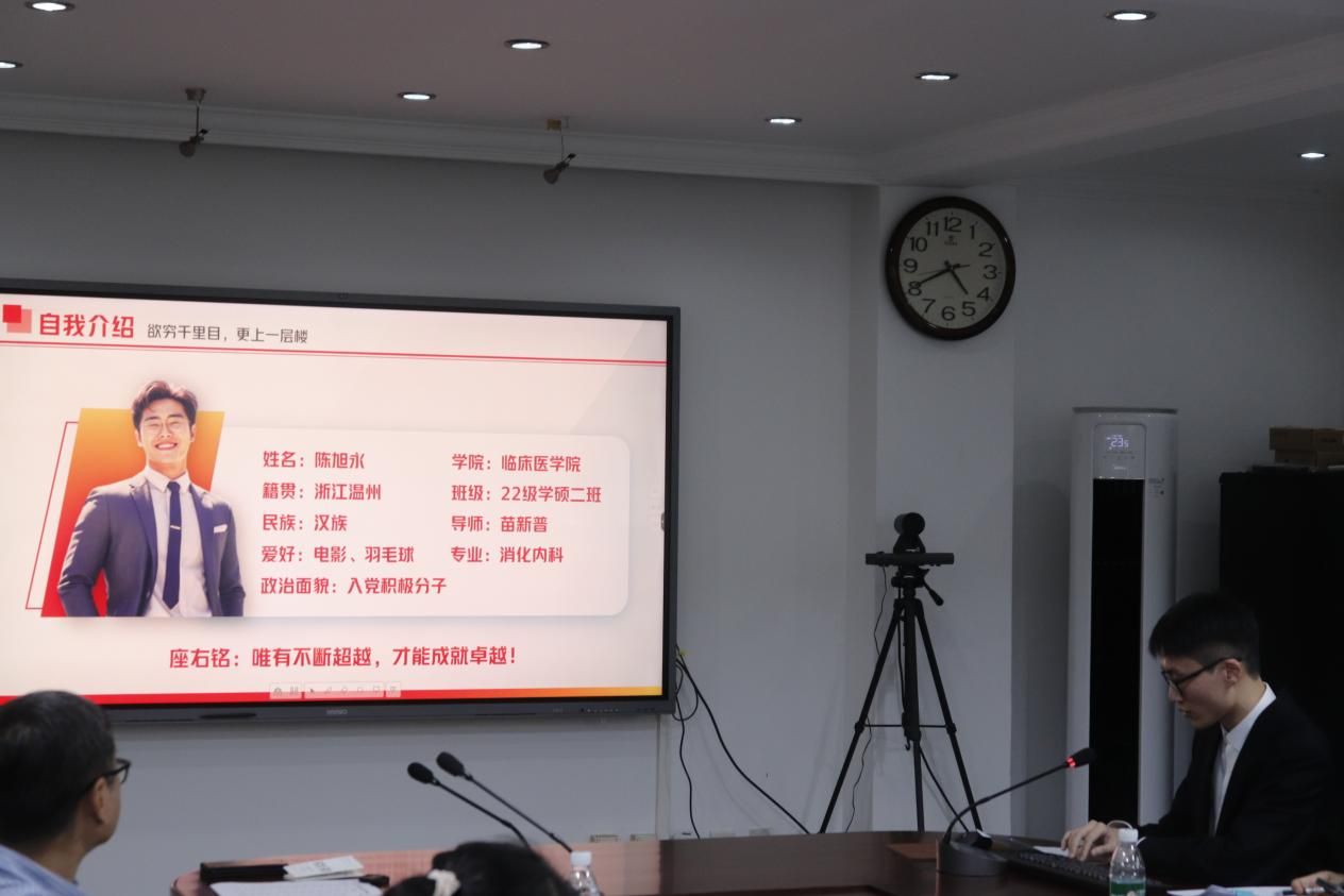 十三位候选人依次登台,通过精心准备的PPT和个人陈述,全面展示了其在研究生阶段的成长轨迹与突出成就。答辩现场气氛庄重而热烈,他们分享了参与理论学习、党团活动、发挥模范带头作用的经历与感悟;他们晒出了亮眼的成绩单、发表的高水平学术论文和获得的各类奖学金;他们深情讲述了投身社会实践、公益服务、社区建设等活动的感人故事和奉献精神;他们展示了参与科研项目、学科竞赛、技术发明、创业实践的丰硕成果。