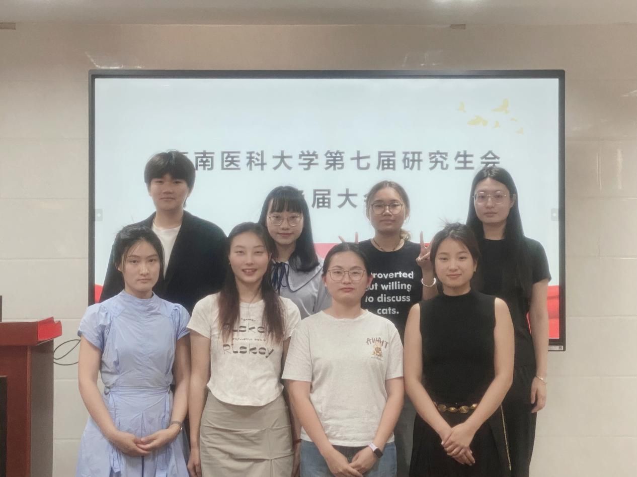 新一届研究生会干部成员为:主席团(黄思博、赵丹廷)、宣传部(黄瑜亮)、社会实践部(张诗雨)、生活部(邓凯捷)、学习交流部(李芮)、文艺部(陈鑫)、办公室(王艳娜)。
