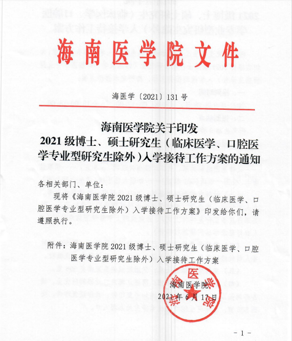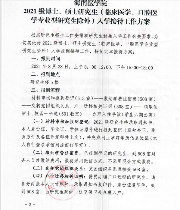 关于印发2021级博士、硕士研究生入学接待工作方案的通知