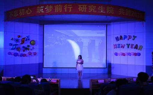 歌曲《温柔》《有点甜》《刚刚好》则激起了同学们对爱情的向往。在游戏知识抢答环节,现场顿时热闹了起来,大家纷纷参与互动,大喊“我要回答问题,选我,选我”,而在林臻哲老师和余丽艳老师的夹气球游戏中给大家带来了阵阵笑声,最后,在全场同学羡慕的眼光下,几位幸运的观众赢得大奖。王娜同学的朗诵《不忘初心、牢记使命》,让我们知道我们医学生的使命,为祖国的富强、为人民的幸福不懈努力!陈云强同学参加全国英语大赛获一等奖的视频更是激发大家的信心和决心!牟忠林委员的《一剪梅》及其随后的师生共跳交际舞则把晚会推向高潮,师生们优美的动作和动感的舞步赢得观众阵阵好评,展示了我们研究生院的活力与激情、温暖与快乐!由白丽爽、陈接贵、毛睿、杜乙平等同学带来的小品《尴尬的相亲》更是让全场捧腹大笑,陪弟弟相亲的哥哥自己却喜欢上了相亲女,最后弟弟带来嫂子打哥哥的场面让人哄堂大笑,几位同学演绎的淋漓尽致,细致入微。最后在集体合唱《我的未来不是梦》中,元旦晚会落下帷幕。