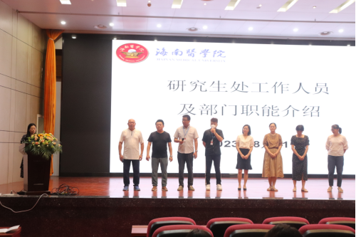 研究生处全体老师均上台亮相并表达了他们对23级新生的热烈欢迎及美好的祝愿。随后,张处长对研究生处(研究生工作部)的机构设置、工作职能、各科室的主要业务等进行了详尽介绍,使新生对taptap点点的研究生管理体系有了较为全面的了解。
