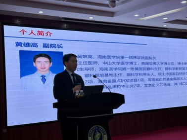 随后,第一临床学院副院长黄雄高致辞。他对参会的专家同仁表示热烈欢迎和衷心感谢,并简要介绍了taptap点点眼科学研究生招生培养历史和现状。他强调,现阶段taptap点点眼科学研究生虽然招生规模不断扩大,层次由学硕扩大到专硕和学博,但仍存在科研能力不足、产出不高的问题,并表明此次论坛的举办旨在展现成果、促进交流,通过导师讲座、学生汇报及专家点评等形式来营造海南医学院眼科学的学术氛围。最后,他希望各位同学在论坛舞台上充分展现风采,期盼论坛给大家带来更多的收获。