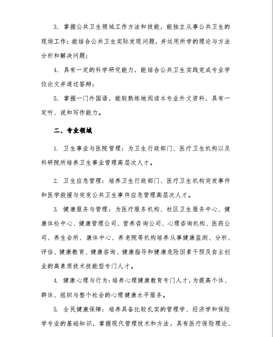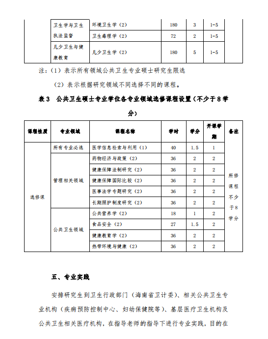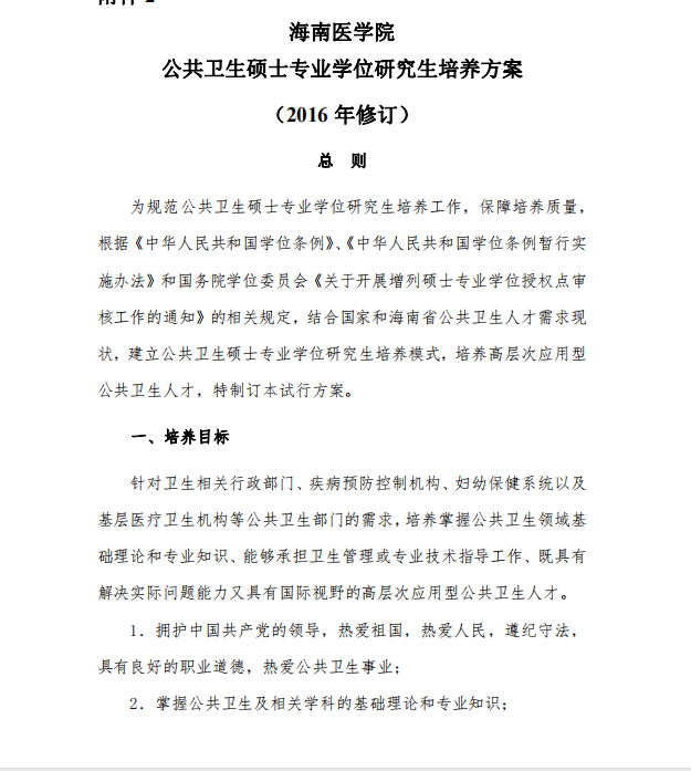 海南医学院公共卫生硕士专业学位研究生培养方案